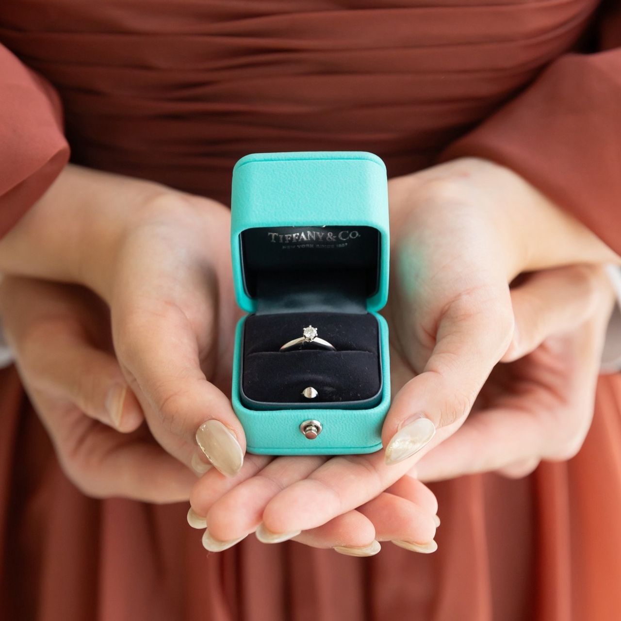婚約指輪は、Tiffany & Co.です。