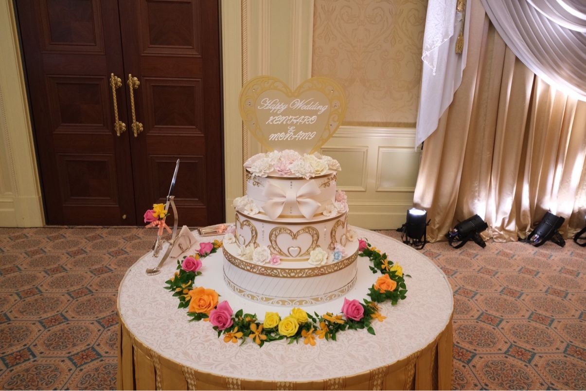 ハートをモチーフにしたウェディングケーキを選びました!2人の名前も書いてあって、お気に入りです!