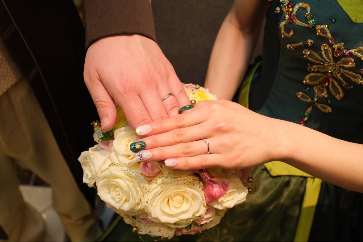 旦那さんからガラスの靴をもらったことが私の中で大切な思い出なので、内側にはガラスの靴のマークと入籍日を入れました!