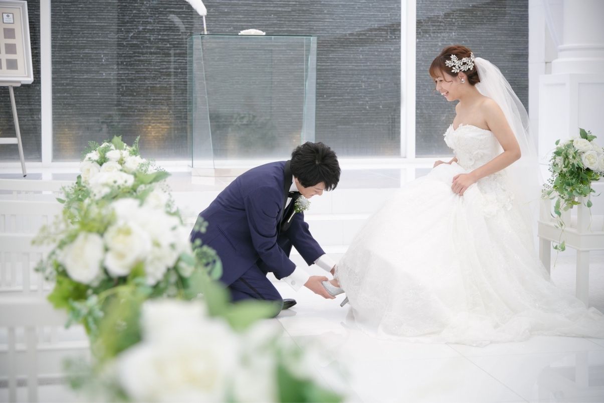 それを知っていたからなのか、プロポーズの時に彼からガラスの靴を貰ったため「これはシンデレラになるしかない!」とテーマを“シンデレラ”に決定しました。