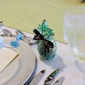 結婚式は、憧れていたハワイで大切な家族、友人に見守られ、青い空と海と風を感じながら式を挙げました。結婚相手がいない時から結婚式をするならハワイのモアナチャペルでと決めてました。少人数なので挙式後のパーティーは新郎新婦も一緒に食事ができ、アットホームな雰囲気で良かったです。披露宴パーティーは挙式には呼べなかったゲスト、親族にもハワイを感じてもらえるように、入場前にはハワイ挙式の映像を流しました。