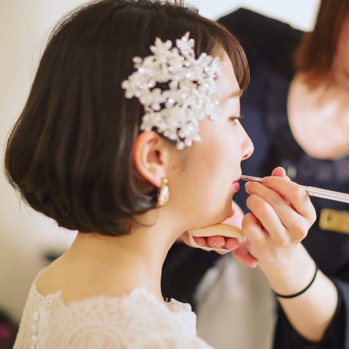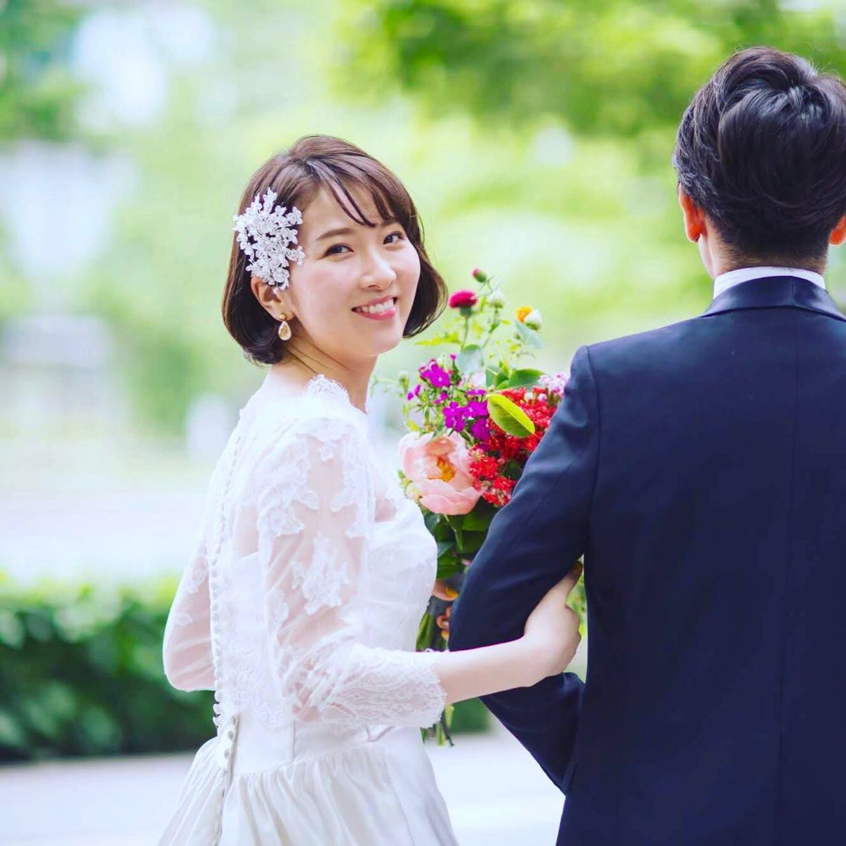ロングヘアだとあまり自分らしくないような気がしたので、式場のヘアメイクさんと、長年通っているヘアサロンの担当さんの両方にご相談して、直前に思い切ってカットしてショートボブにしました。 適度に個性が出て、周りからも好評でした。