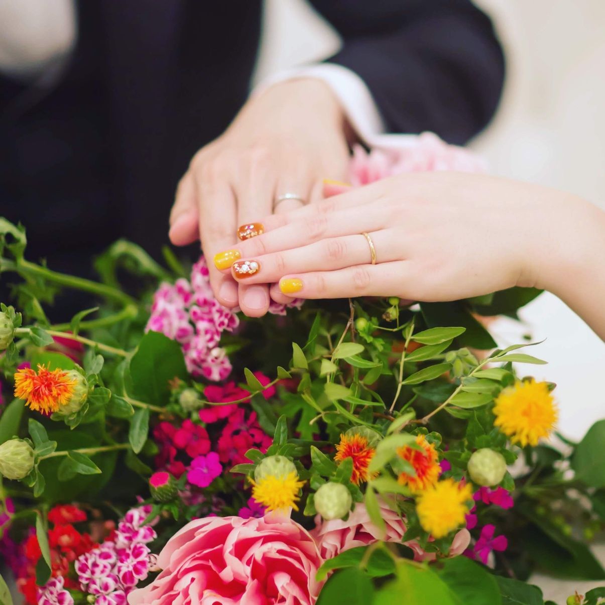 会社の上司がジェルネイルの資格を持っていて、ウェディングネイルをプレゼントしてくれました。