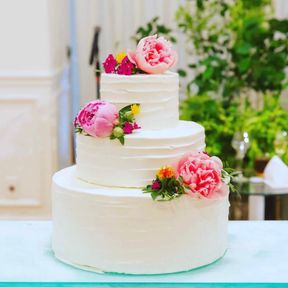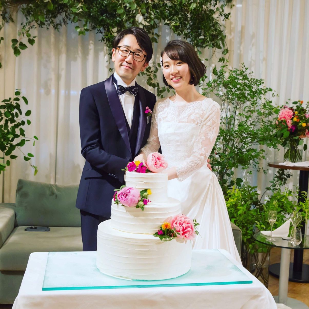 飾りつけはブーケや会場装花とお揃いの芍薬でシンプルに。