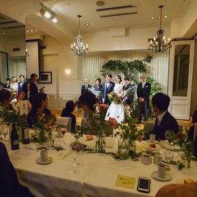 みんな思い思いに会場を歩き回れるくらいフランクで、わいわい会話をしながら料理をゆっくり楽しんでいただける、新郎新婦との距離の近い楽しいパーティを目指しました!