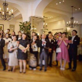 本番前に音出しのリハーサルをしてもらうために新郎を会場外に誘い出したり、バンドの楽器を隠すためにプランナーさんやスタッフ全員に協力していただき、その甲斐があって、本番まで全く気づかれませんでした! 歌を歌っているとき、旦那さんはすごく嬉しそうで、涙を流していたのが印象的できた。歌い終わったあと、私のことをぎゅーっと抱きしめてくれました! 周りの人も感動してつられて泣いていました笑