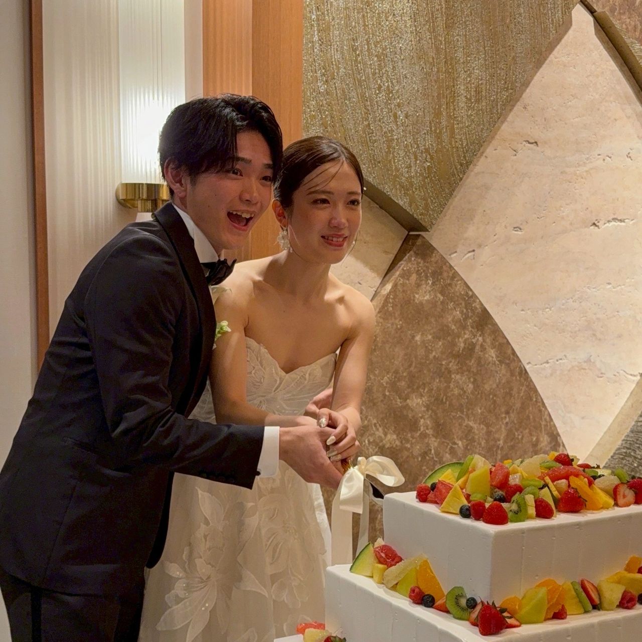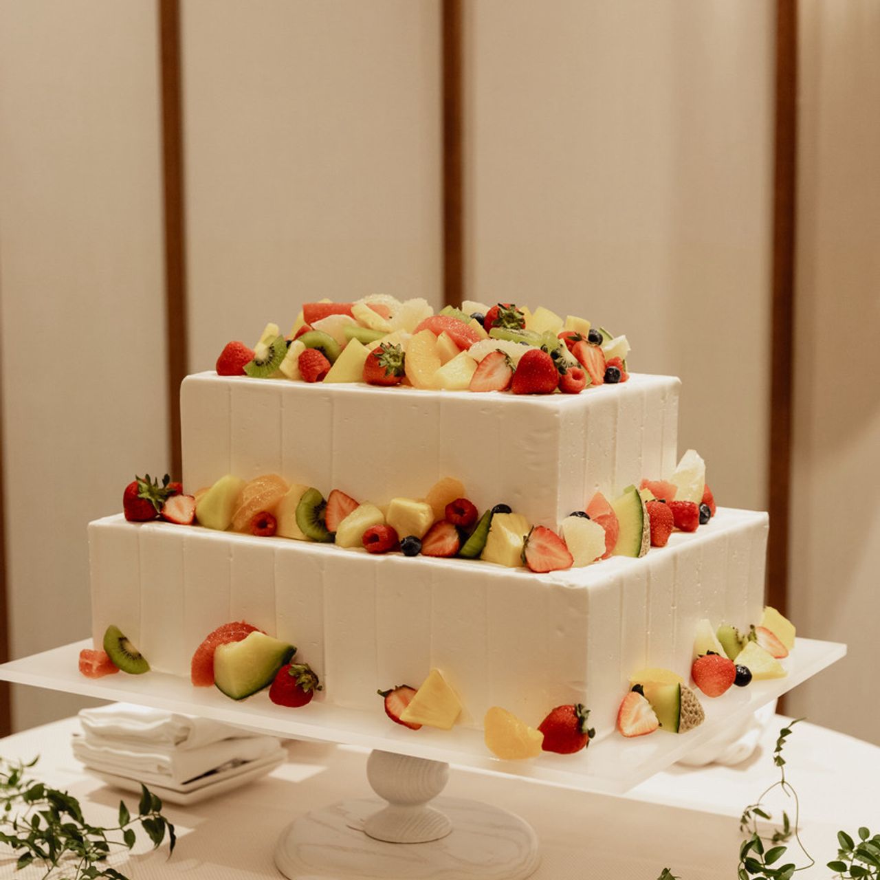 可愛いデザインがいくつかあり迷いましたが自分たちがイメージする結婚式に雰囲気が合っているなと思ったケーキを選びました。フルーツが盛り盛りで可愛かったです。