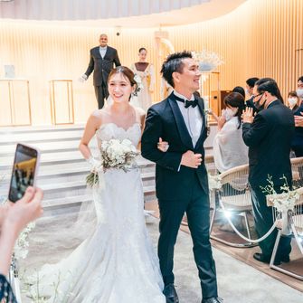 感染対策はもちろん、1つ1つのアイテムにちょっと笑いを入れたり、私達らしい式になるように細かく決めていきました。リングドッグやバズーカも凄かったと言っていただけました。
