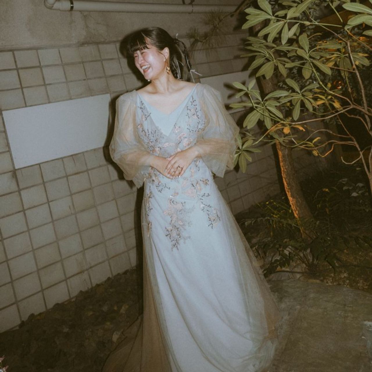水色のチュール素材で、どの角度から見ても可愛らしさが際立つデザインは、他ではあまり見かけない特別感があります。