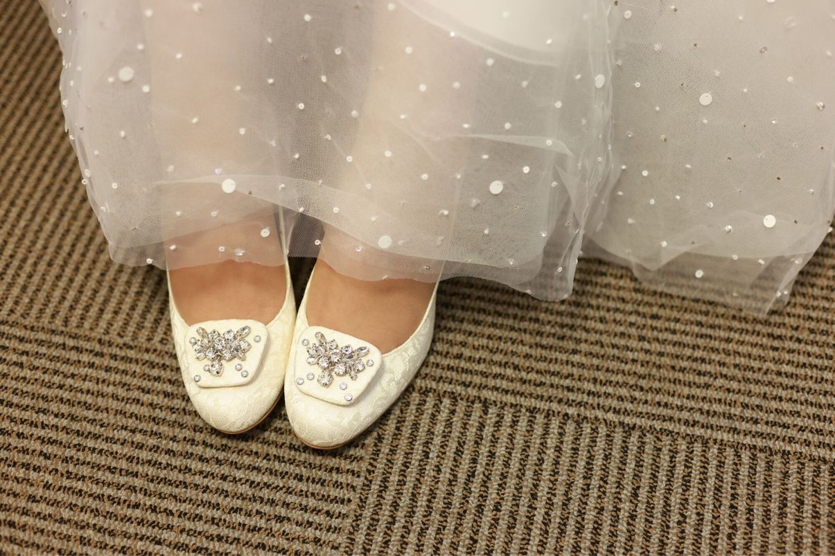 ホワイトレース状のアクセサリー付きヒールです。