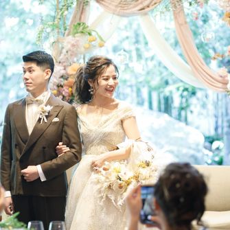 11月に挙式予定にしていましたが、コロナの影響もあり3月に延期し、春らしい挙式をあげることが出来ました♡ほとんど親族のみだったので、アットホームで参列した方に楽しんでもらえる結婚式をテーマにしました。