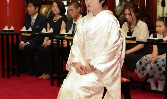 とにかく私たちは、神田明神挙式の参進の儀に心を奪われました。これを家族友人皆と、一緒に体感したいと思いました。神田明神の参進は、神職の方々を先頭に、高らかな雅楽の演奏に率いられて歩むスタイルです。