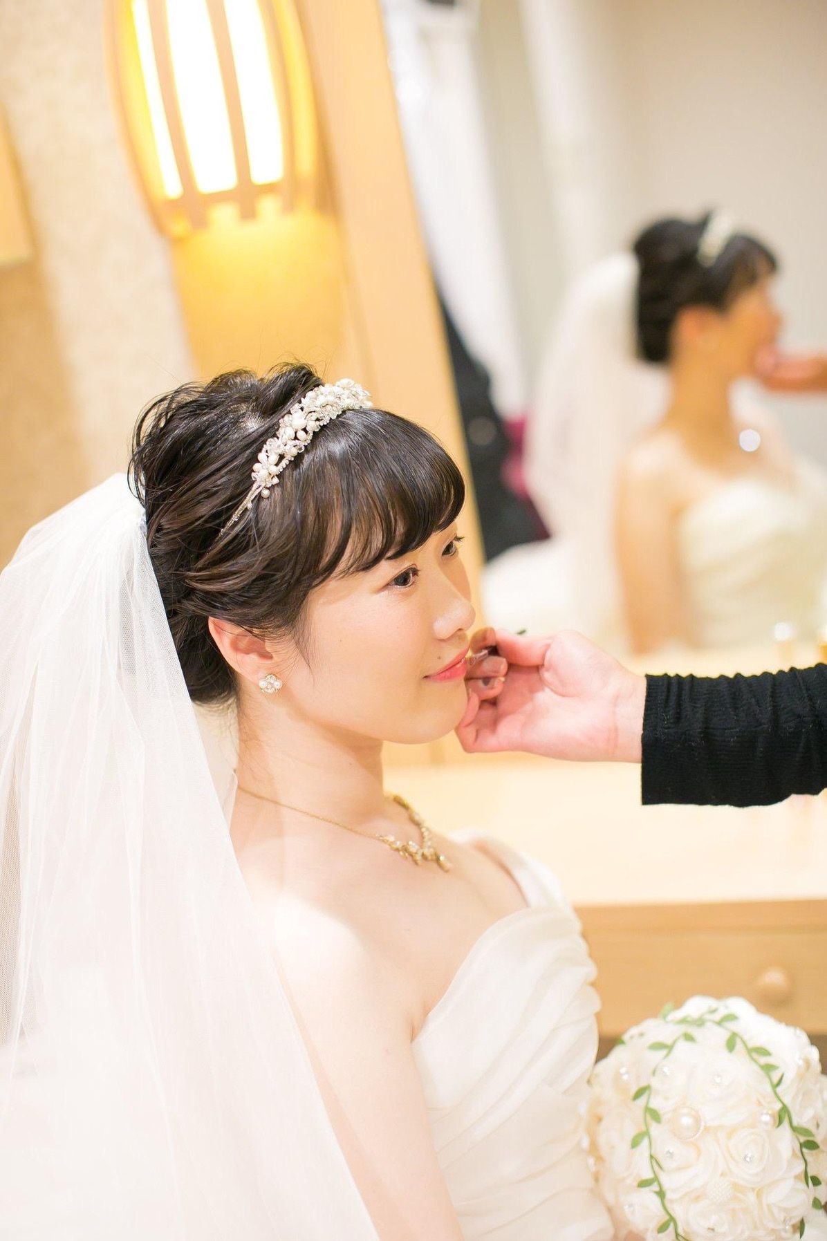 エレガントに仕上げて頂きたかったので、シニヨンにティアラをつけました。