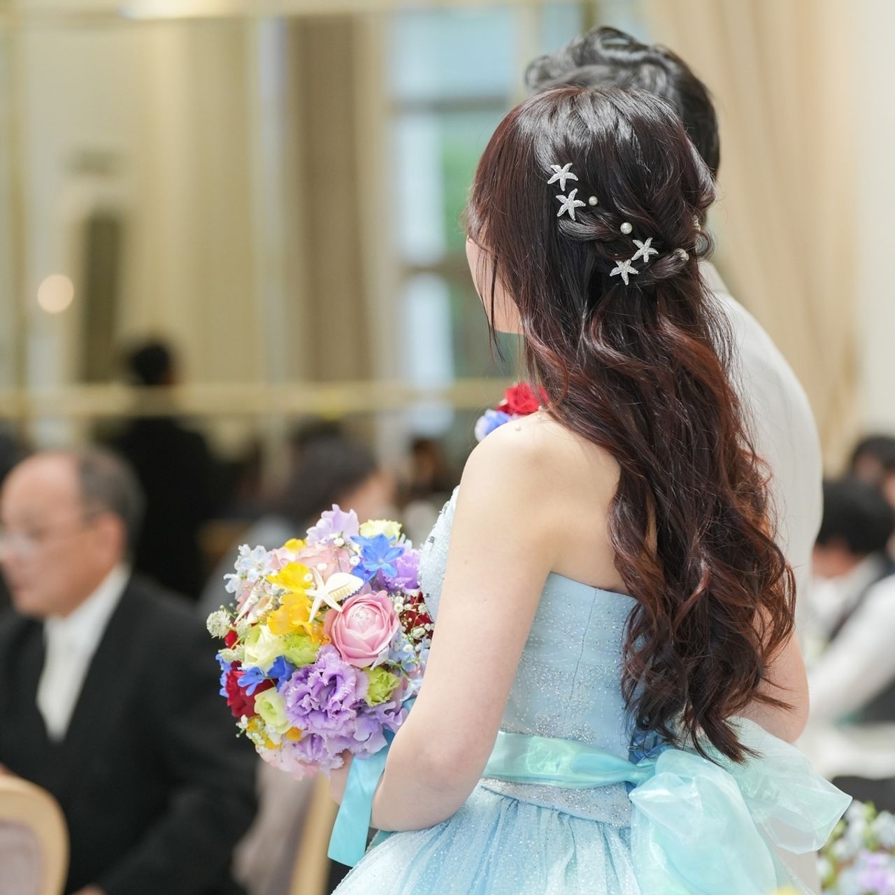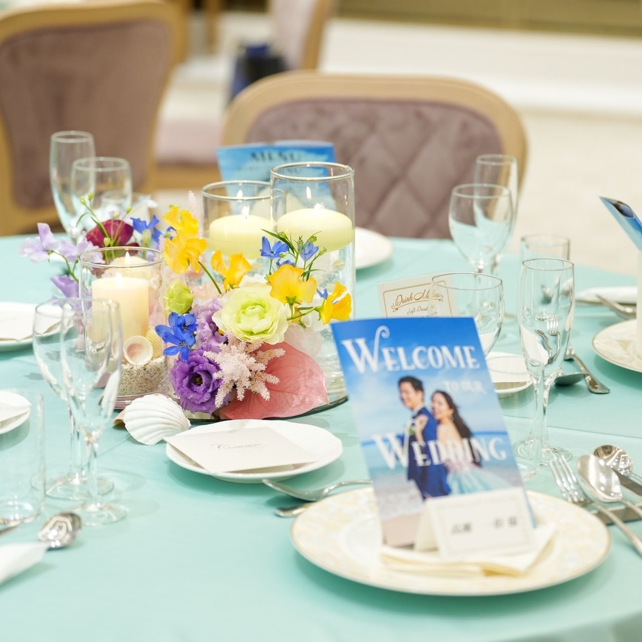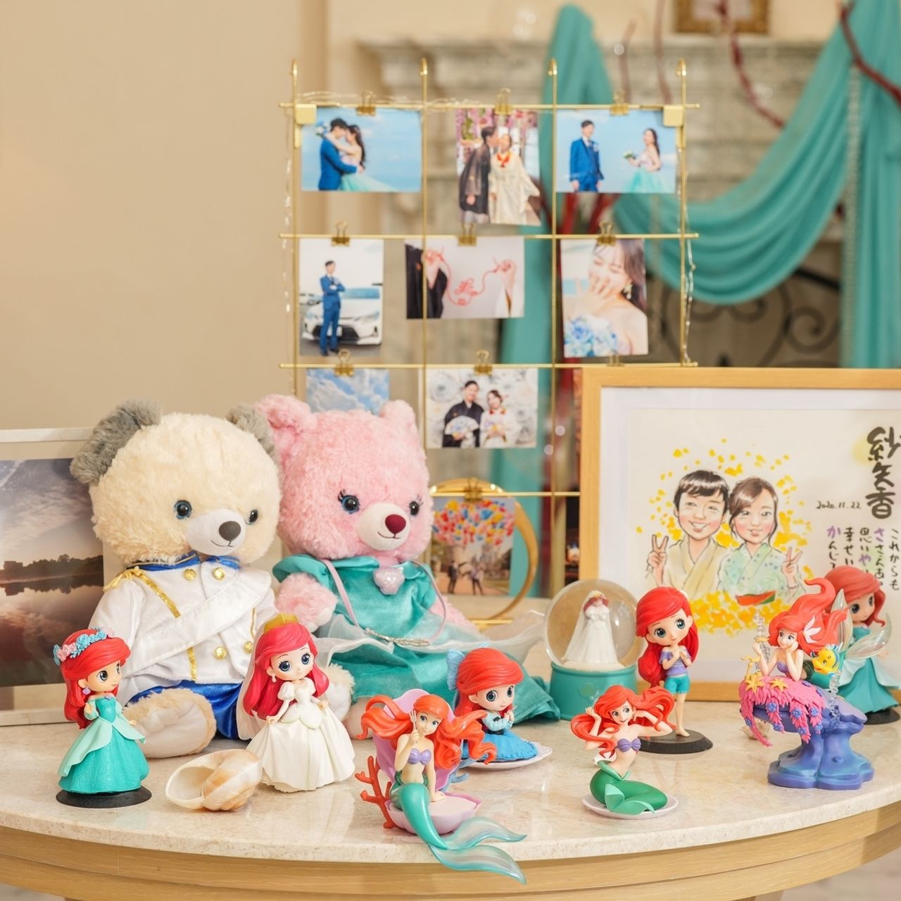 私はリトルマーメイドが大好きなので、ロビーや披露宴会場はアリエルの世界観を全面に出しました🧜🏻‍♀️
