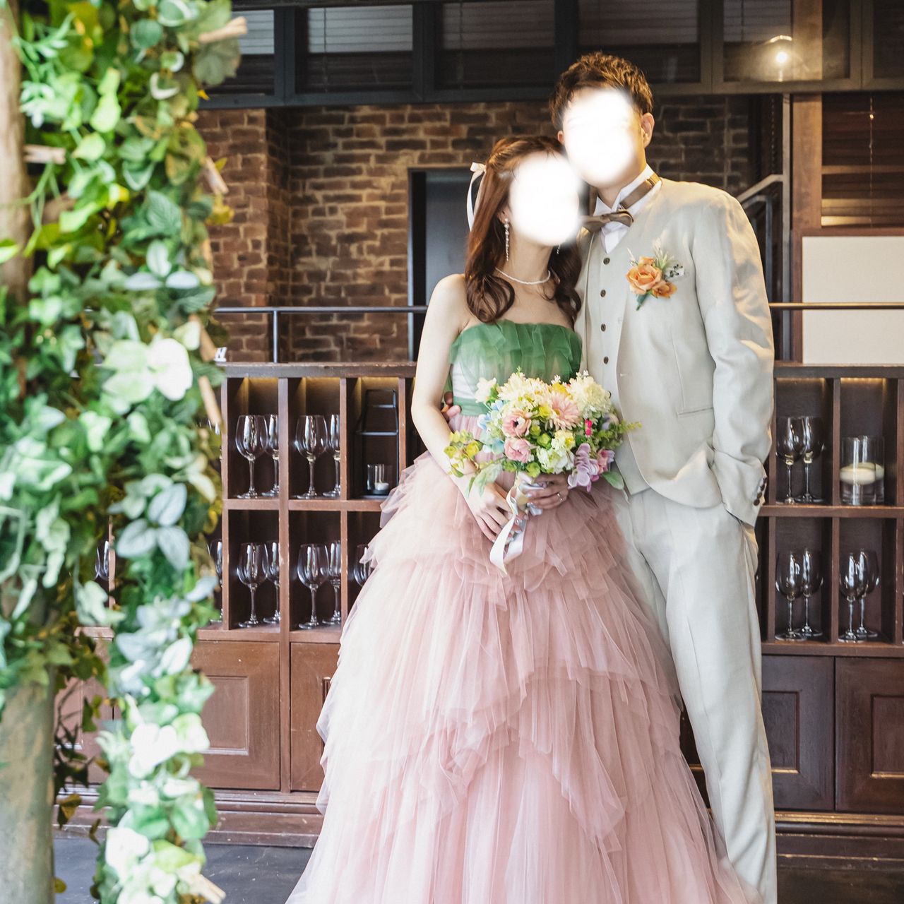 ピンクとグリーンのバイカラードレスにしました。元々インスタで見かけて気になっていたのですが、実物はもっと可愛くて即決しました。