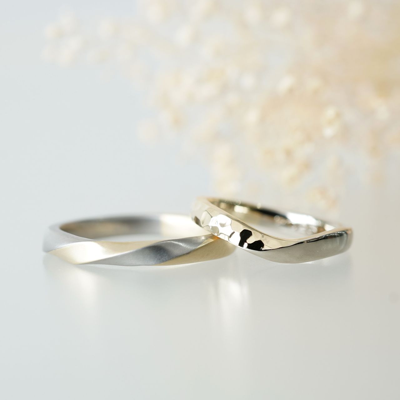 ゴールド×シルバーを基調に、夫は捻りデザイン、私はウェーブデザインにしました。
