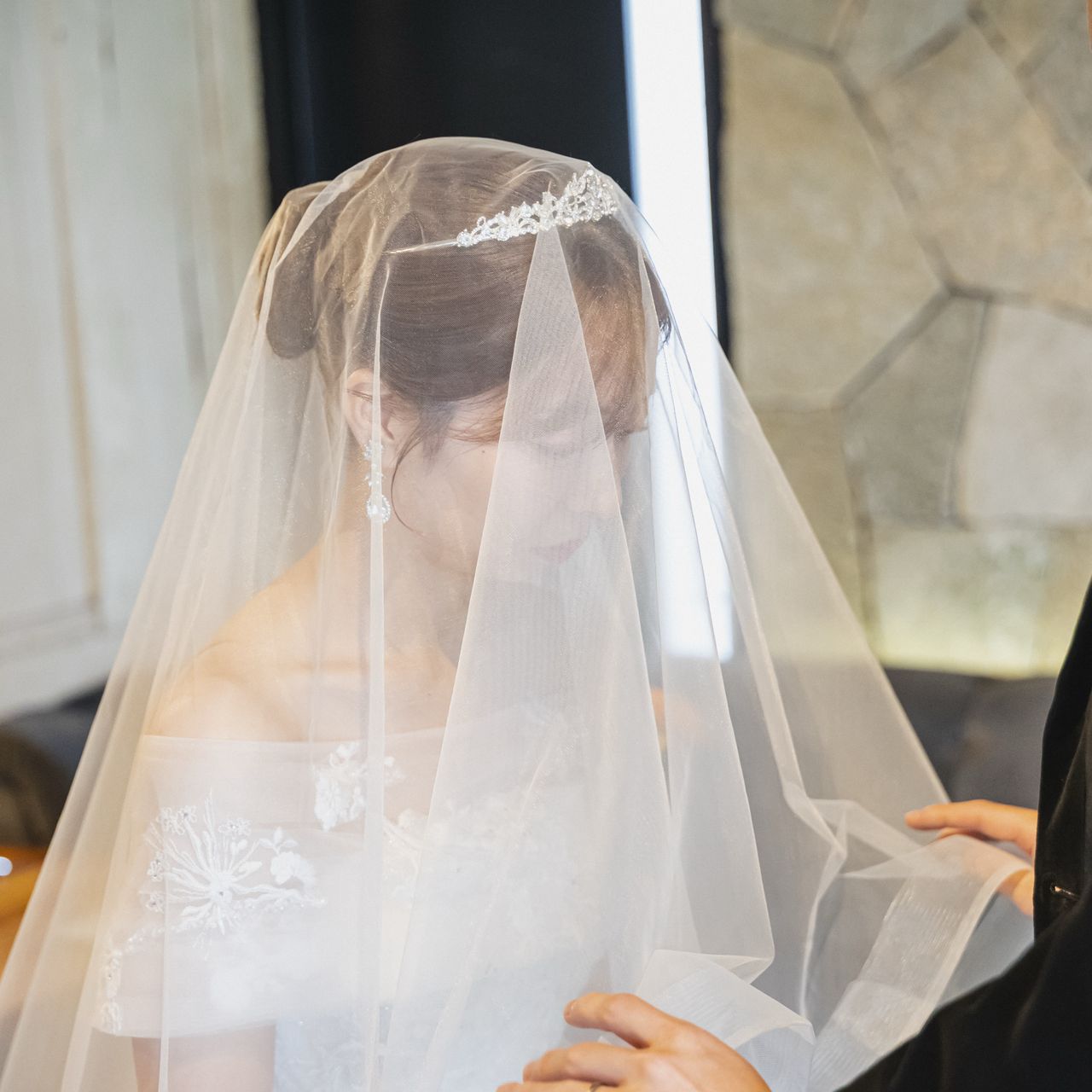 ドレスがレースで上品なデザインだったので、ティアラ、イヤリングもあまり癖のない上品なデザインを選びました。