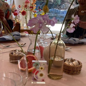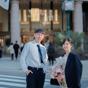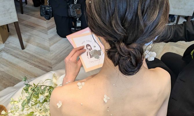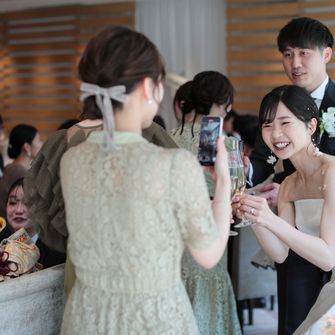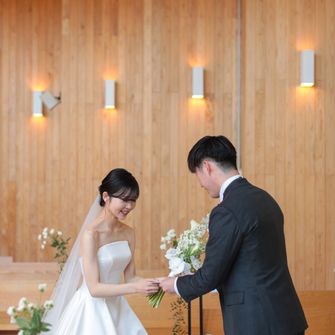 テーマ 表「わくわくがとまらない春」裏「最大限の心配り・ゲストを楽しませる」春らしい透明感のあるカラフルなお花と、みずみずしいフルーツを取り入れて気持ちまで明るく。ゲストも春らしく明るい装いを身にまとい、華やかに盛り上げてくれました◎緑豊かで開放的で癒される空間に惹かれ、チャペルと披露宴会場ともに木目調で温かみのある鶴見ノ森 迎賓館に一目惚れ!オリジナル演出や持ち込みの自由度も魅力的でした。