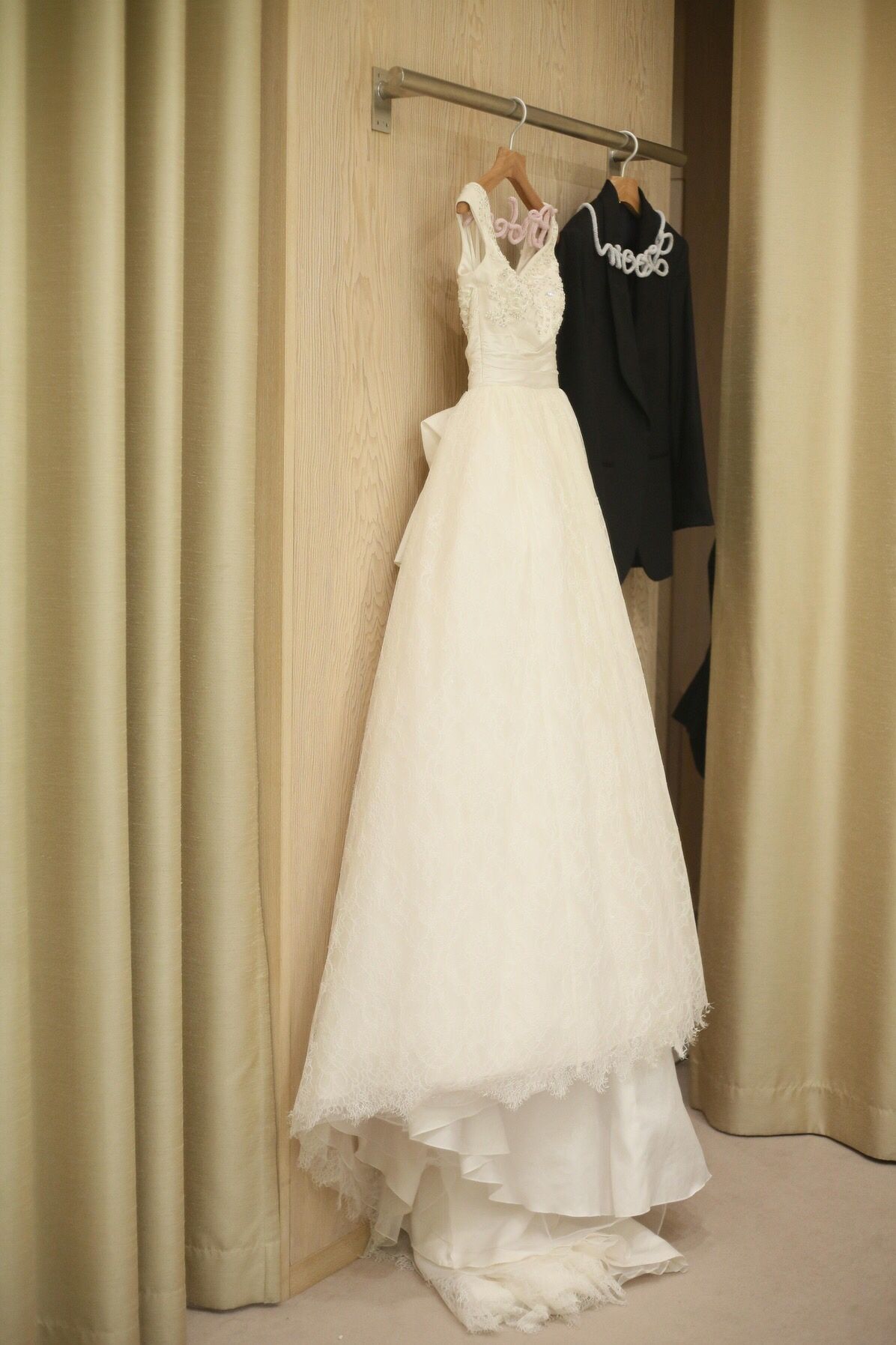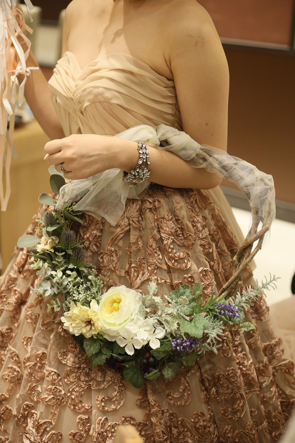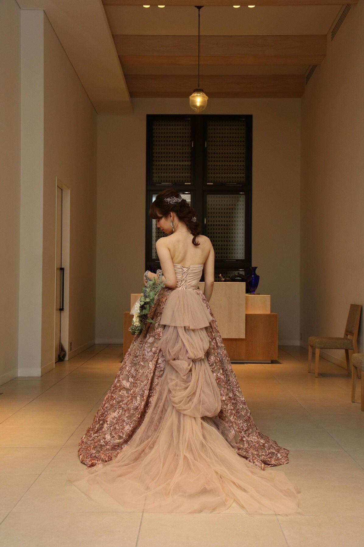 馴染み色すぎるかとゲストの反応も心配でしたが、年配の方からも仕立ての良い品のあるドレスだったと褒めていただきました。