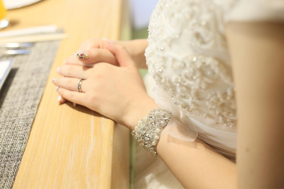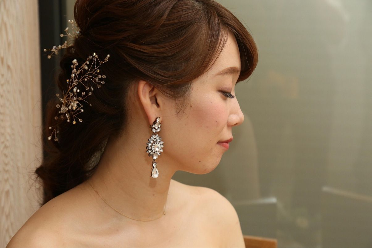 イヤリングとブレスレットはドレスに合わせて大ぶりのものを用意しました。