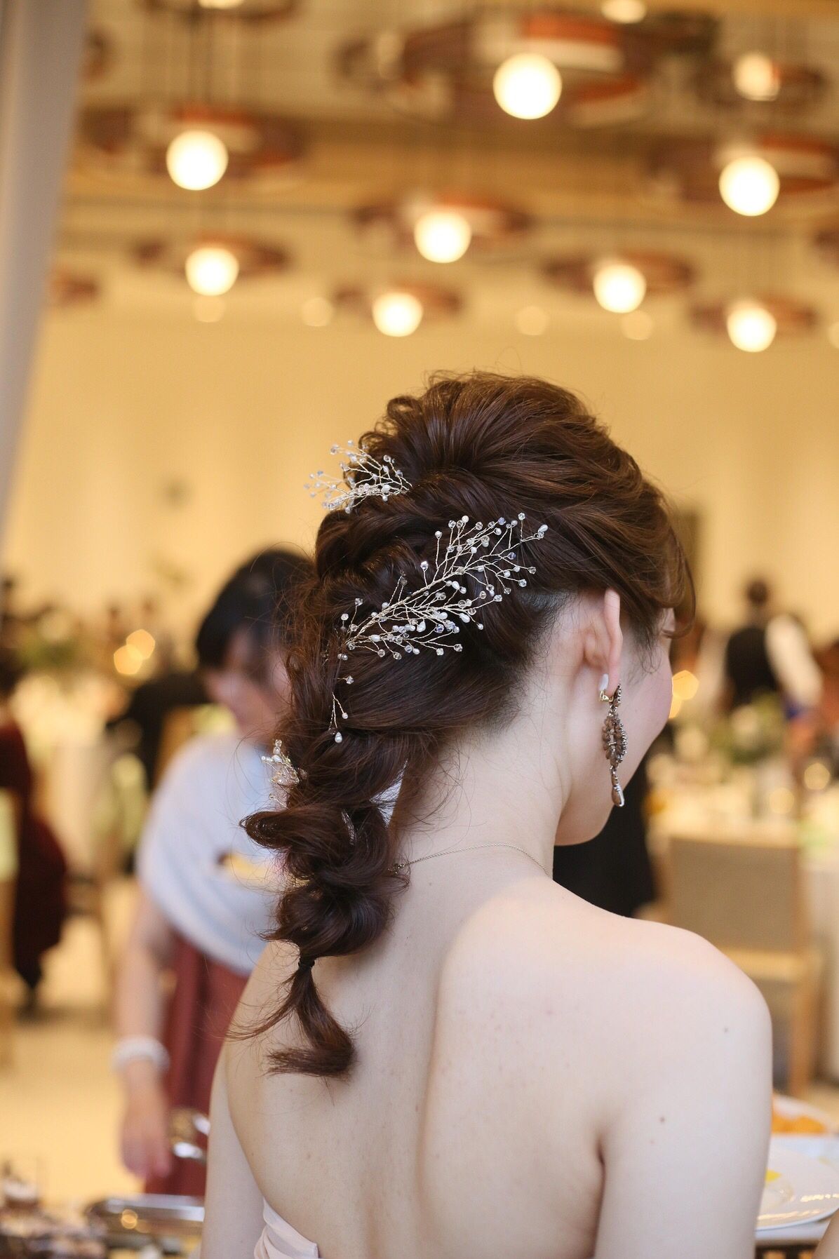 披露宴開始時はシニヨンを少し崩して。