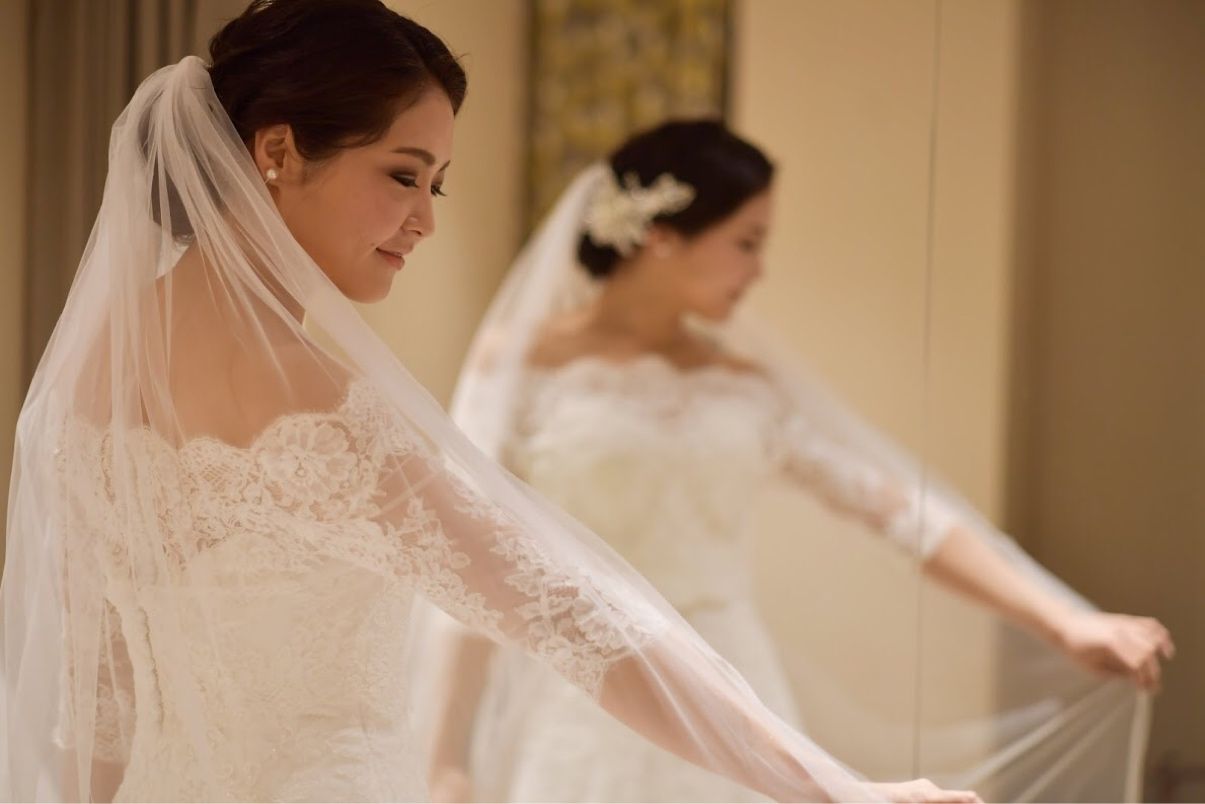 ・イヤリングは前撮りで使った大ぶりのものに変更