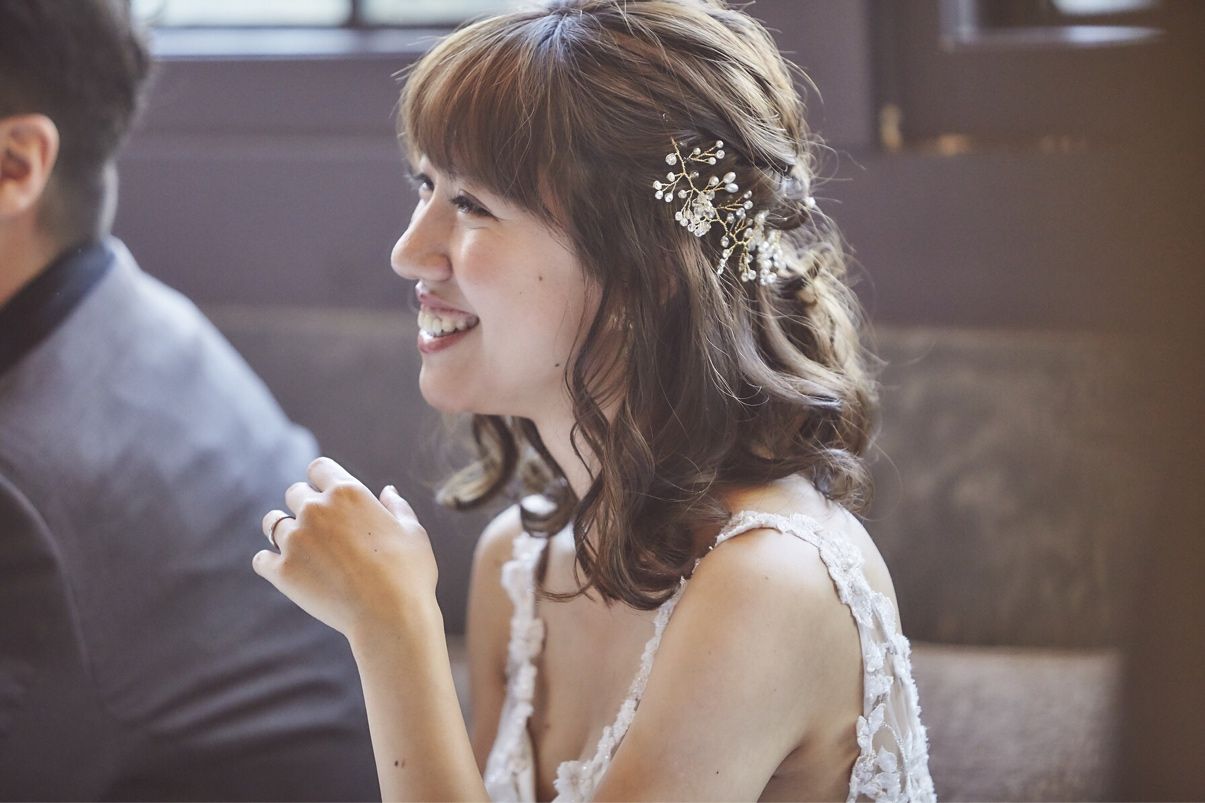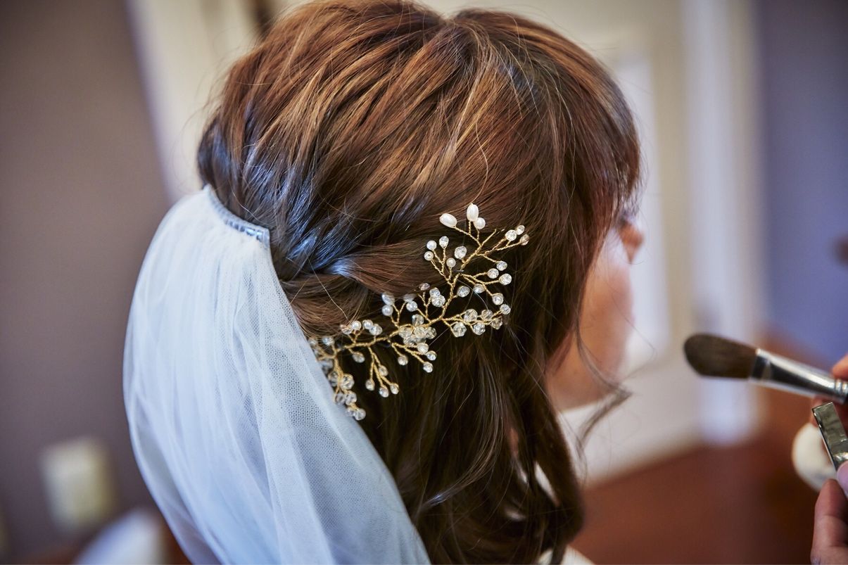 小枝のゴールドのカチューシャのようなのをつけてもらいました!minneで購入しました!