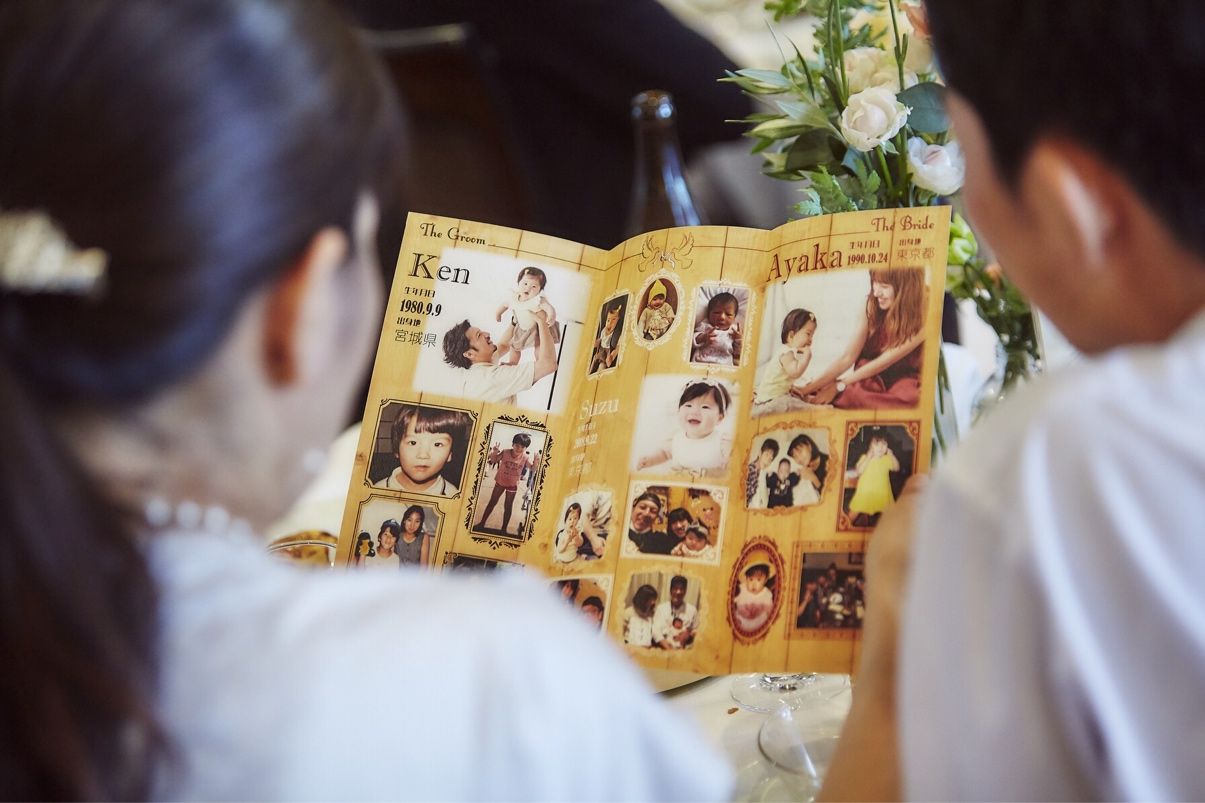 旦那さんがテレビ美術関係の仕事なので、プロフィール、招待状、会場に飾る写真パネル、席次表、メニュー表を手作りしてくれました!