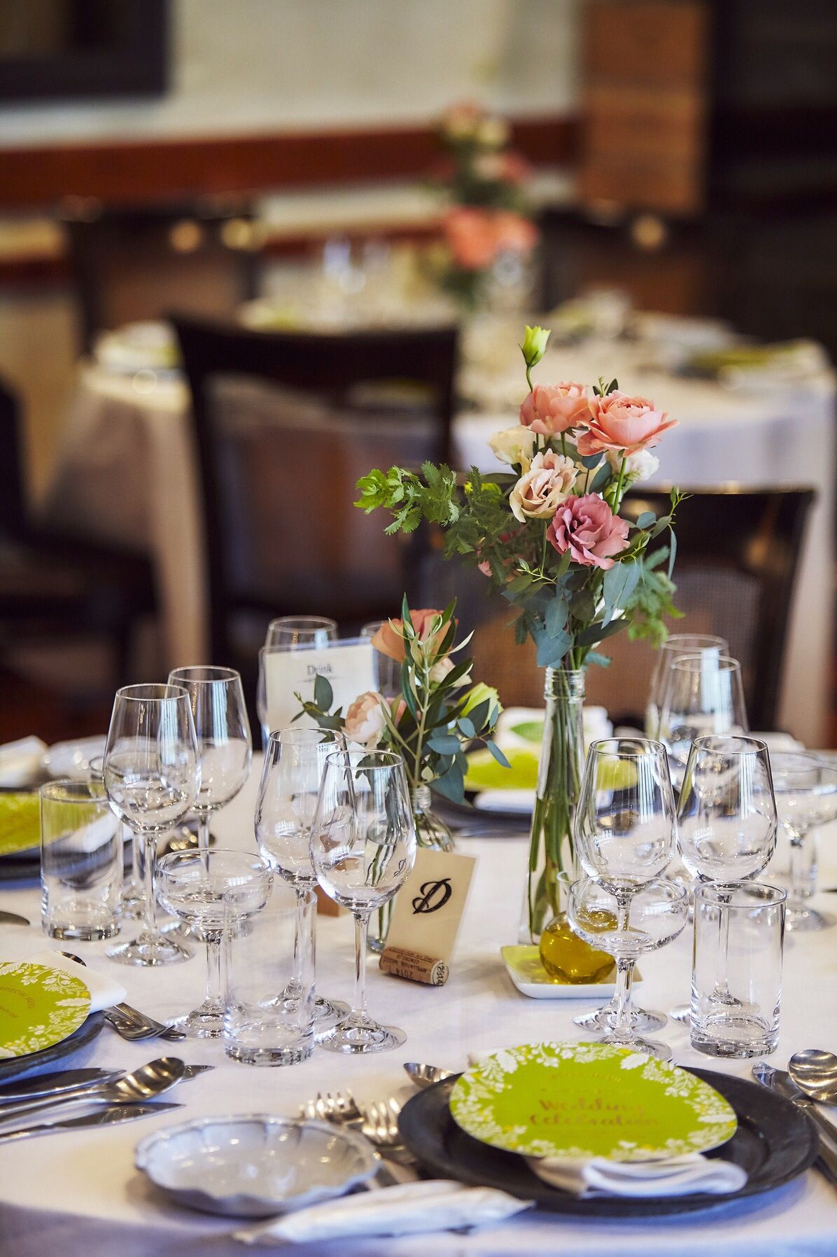 淡いピンクや少し茶色系の薔薇をメインに、オリーブの葉を入れて、大人上品な、アンティークなBon Bon Bon La faitmaisonさんのレストランの雰囲気に合うようなブーケや装花にしていただきました!