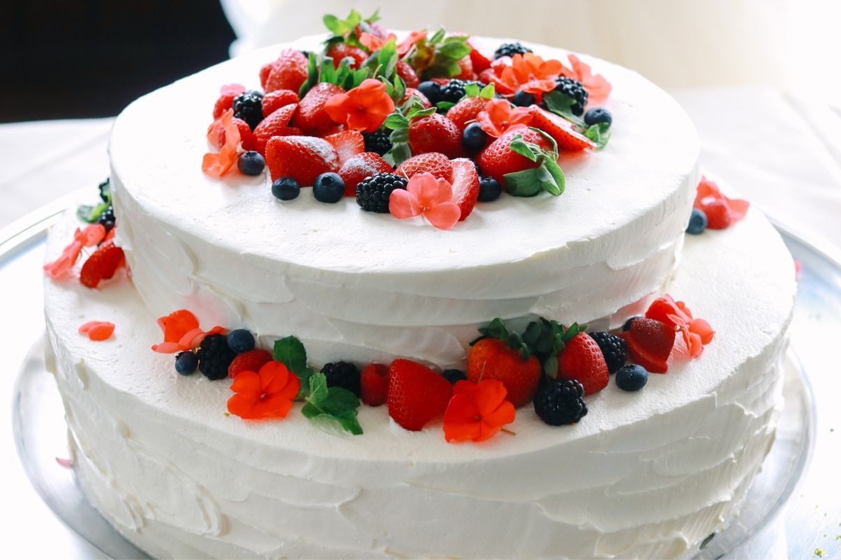 2段ケーキの中央にベリー系のものをたくさん乗せてもらって、プレートなどは乗せずにシンプルなケーキにしました。