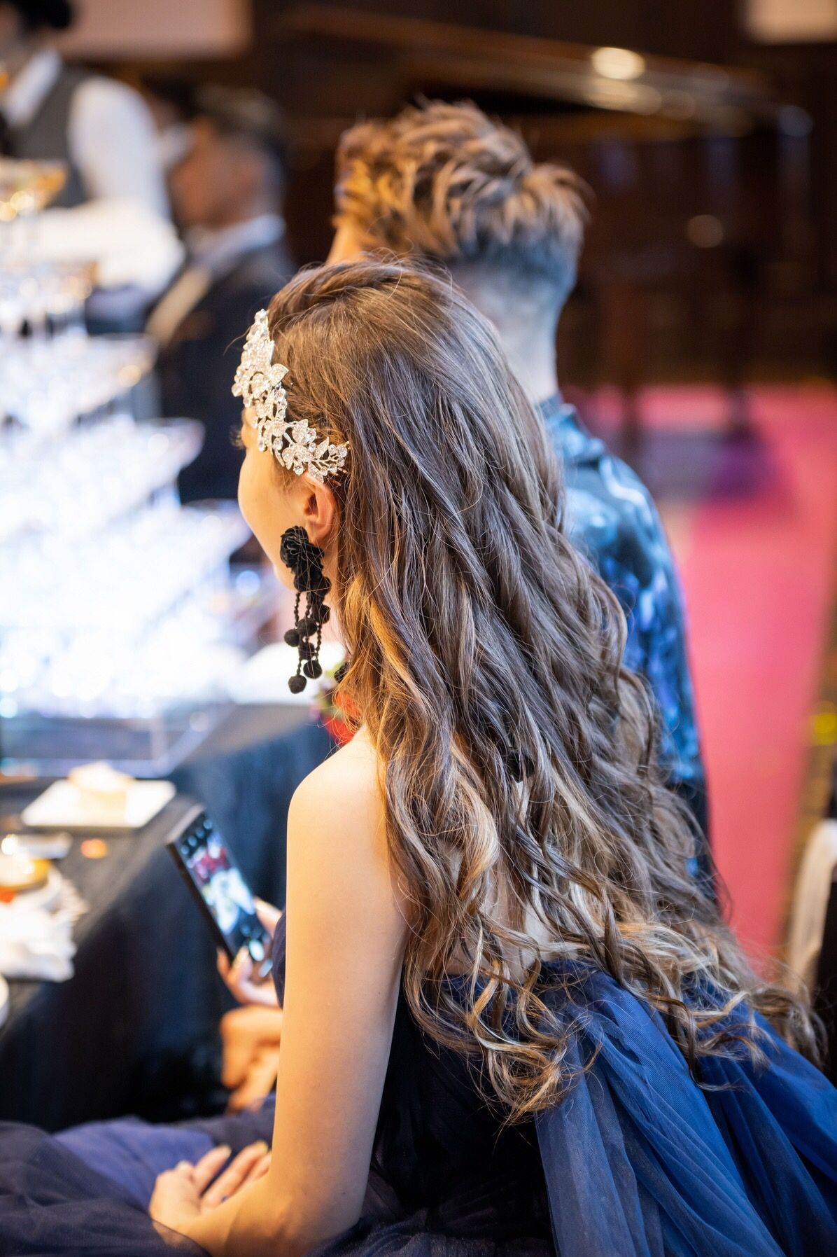 余興のダンスでは必ずプリンセスラインで踊りたかったので、憧れていたSophiaを。ただ好きな色がなかったので、ネイビーで作って頂きました★*゚