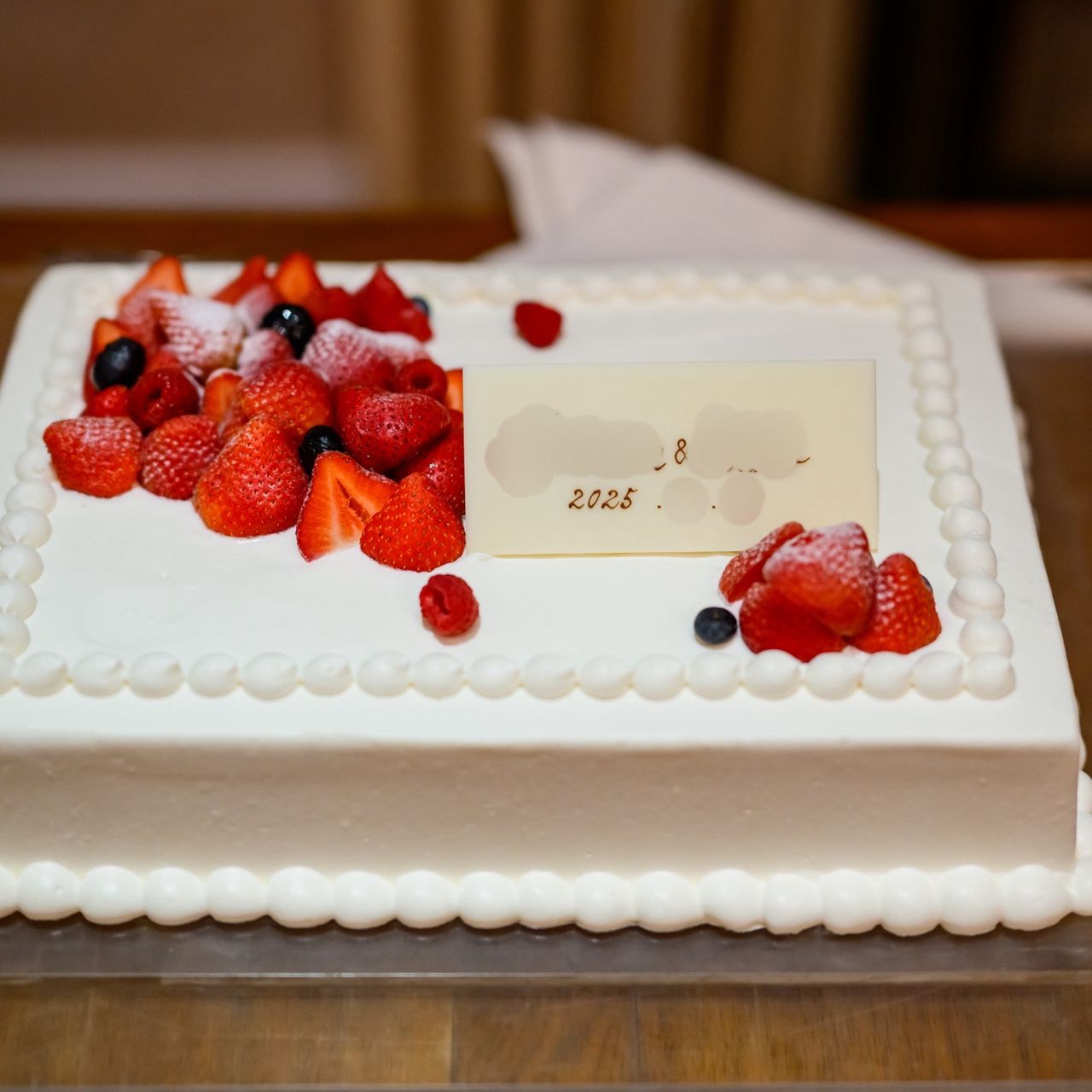 あまりこだわりがなかったので、プランナーさんのおすすめや参考ケーキを見て決めました。シンプルで、フルーツが載っているケーキを選んでいます。