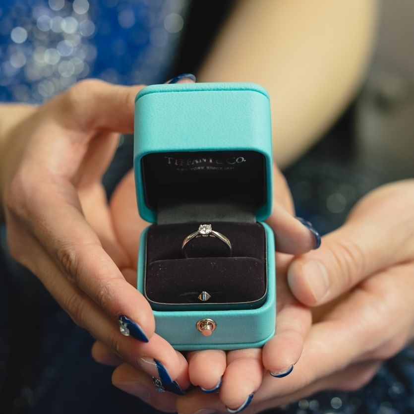 そして、夫がサプライズでプロポーズの計画をしている際に、様々なブランドの婚約指輪を見に行ってくれたそうなのですが、いろいろ見た結果、Tiffany&Co.のハーモニーの指輪が可愛いと思ったのと、私がネックレスを持っていたこともあり、こちらを選んでくれました。
