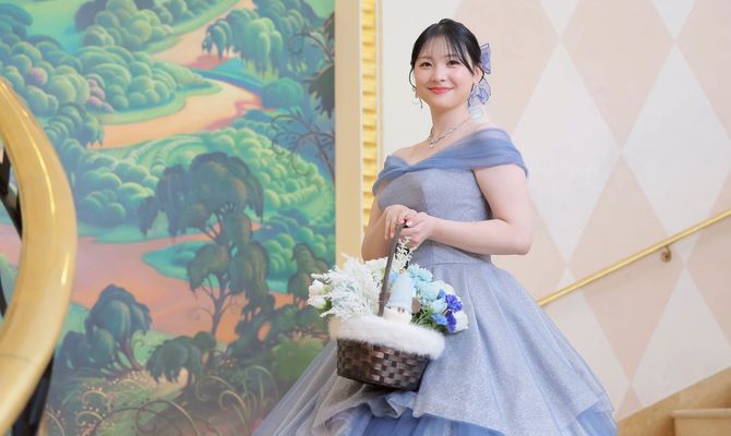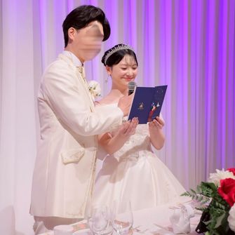 結婚式のテーマは『みんながもっと幸せになれる1日』です。こちらは、大好きな東京ディズニーリゾート30周年から着想を得ました。このテーマにあわせて、披露宴の再入場時ドレス色当てクイズを行っています。