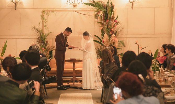 テーマは"私たちらしい結婚式を"です。彼がプエルトリコ人ということもありキリスト教式でも神前式でもなく、みんなが承認になってくれる温かい結婚パーティーにしました。時期は秋でしたが、装飾などでプエルトリコの常夏感も感じられるようお花屋さんとは入念に相談しました。