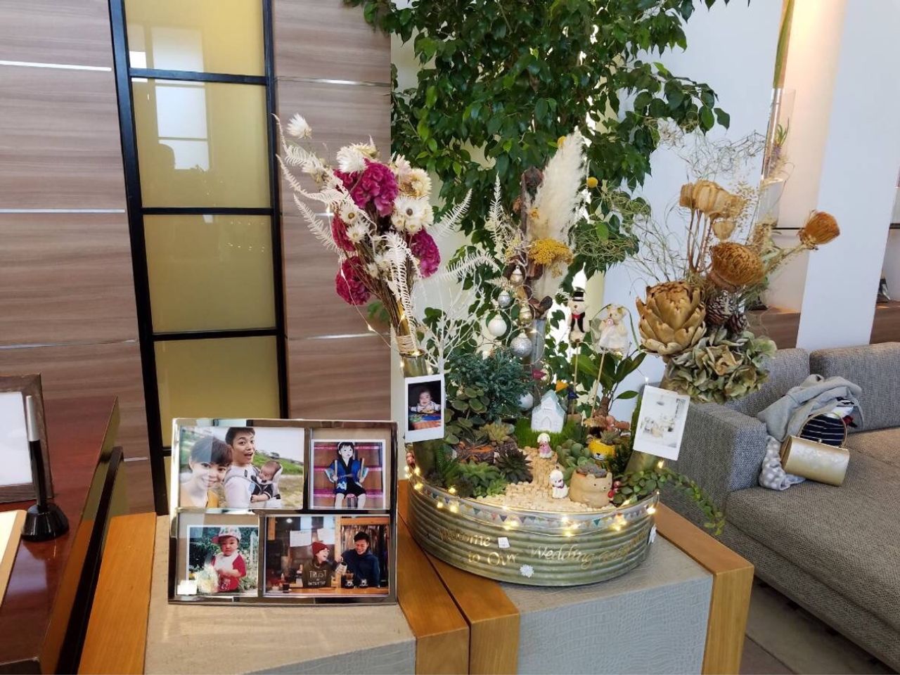 多肉植物の鉢植え?みたいなのは新婦の父の手作り