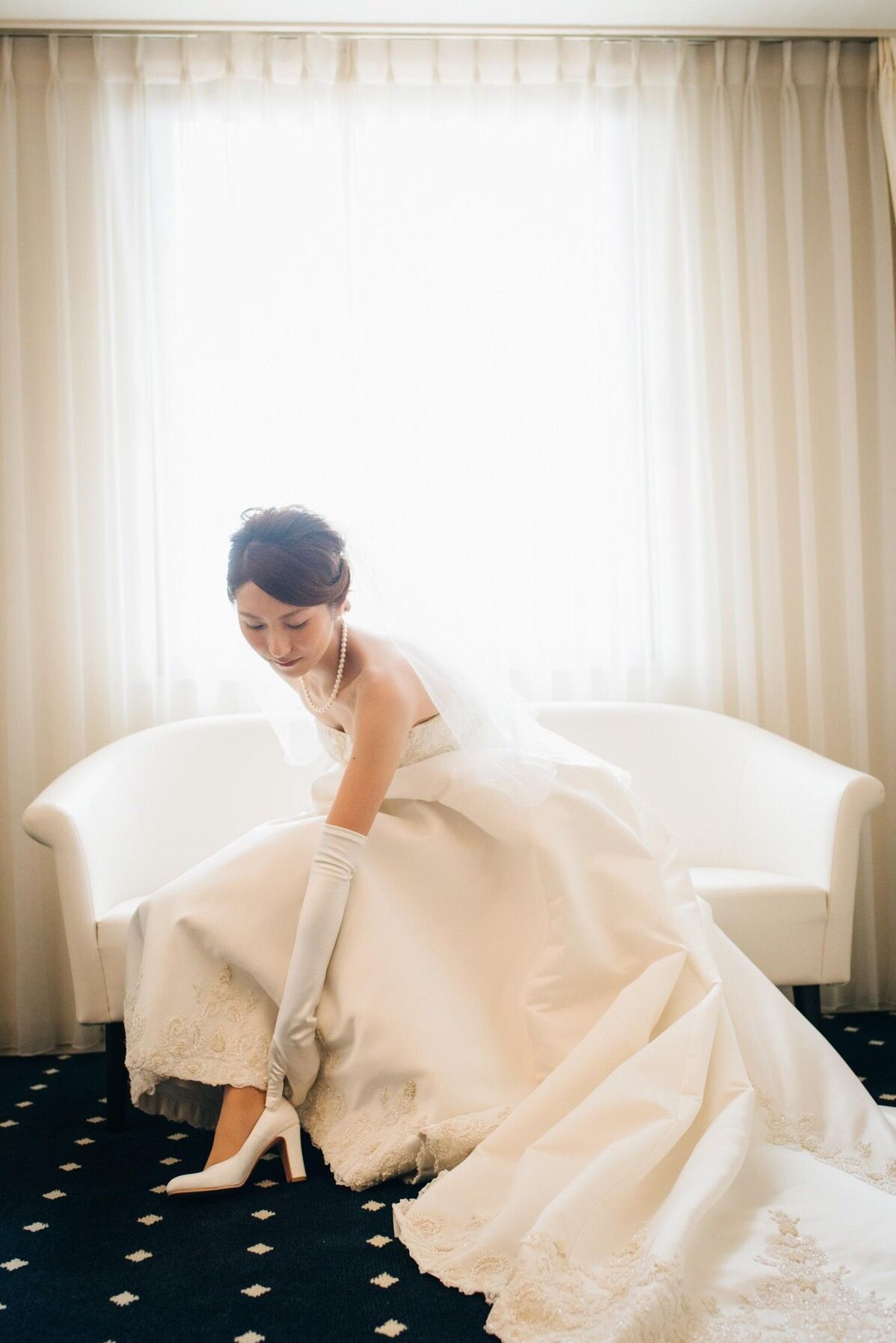 自分の雰囲気やキャラクターを考えて、Aラインの胸元はストレートカット、サテンまたはレースに絞って選びました。
