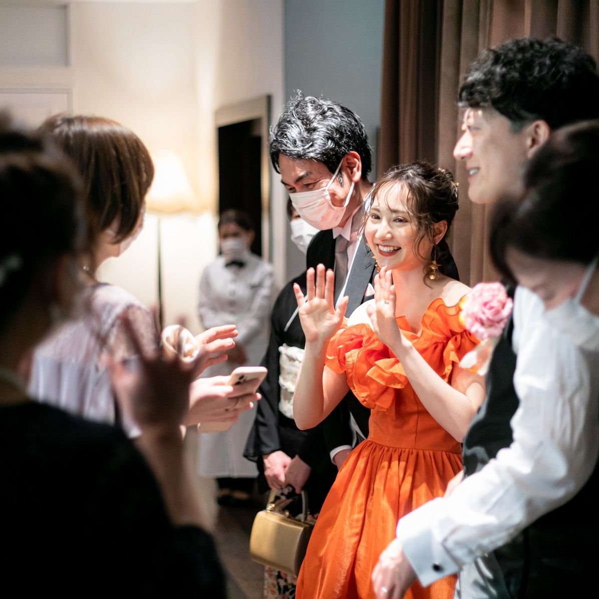 ウェディングドレスにもオレンジのカラードレスにも合うクリーム色にしました。こちらのブランドはお手頃価格でデザイン、色味、テイストが全てシンプルなので、とっても気に入りました!