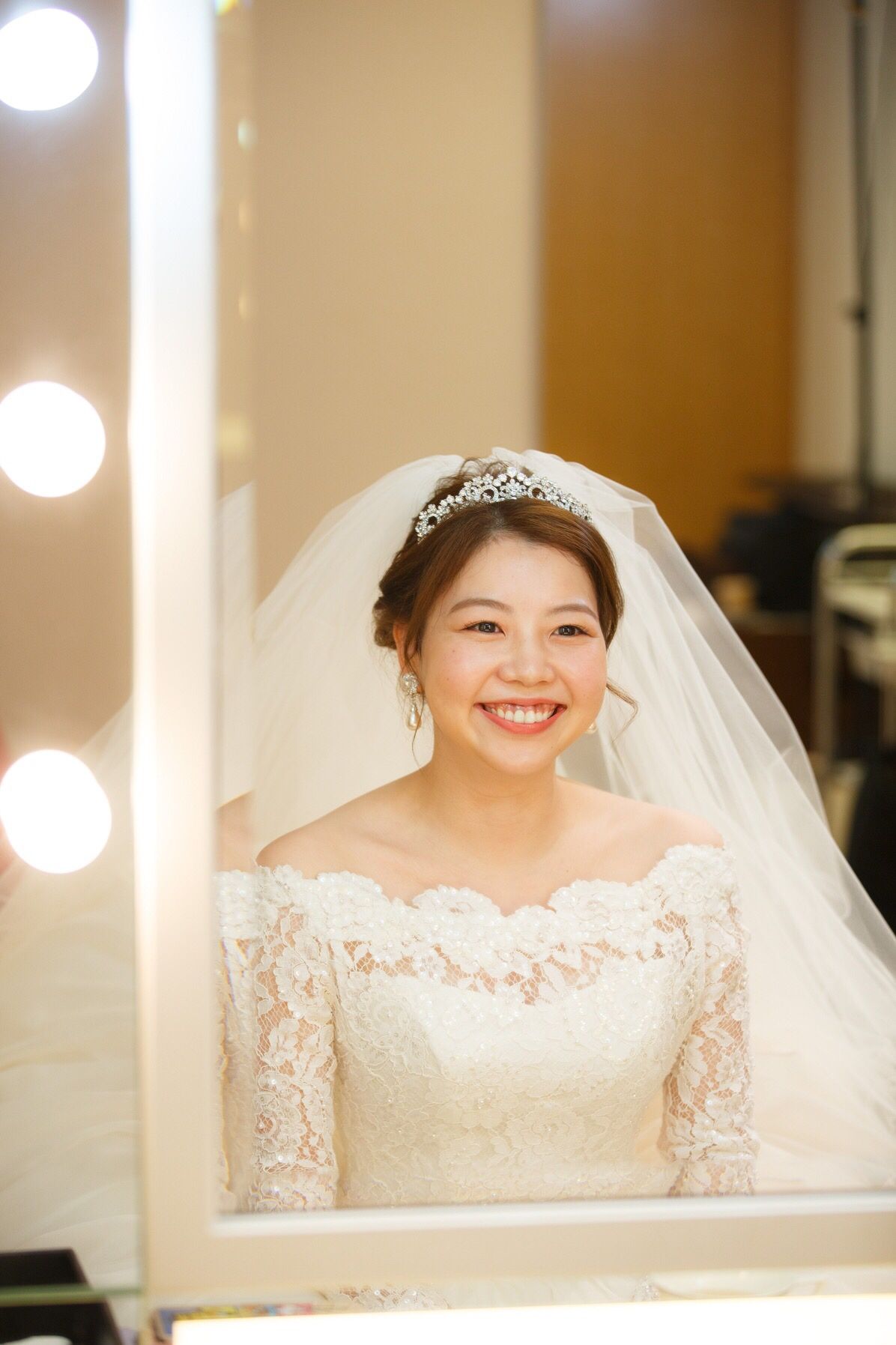 ティアラは、横に大きくて高さの低いものを。