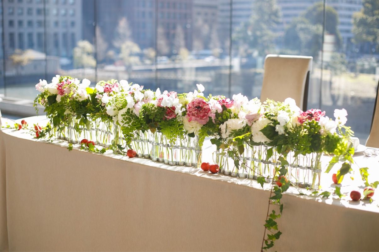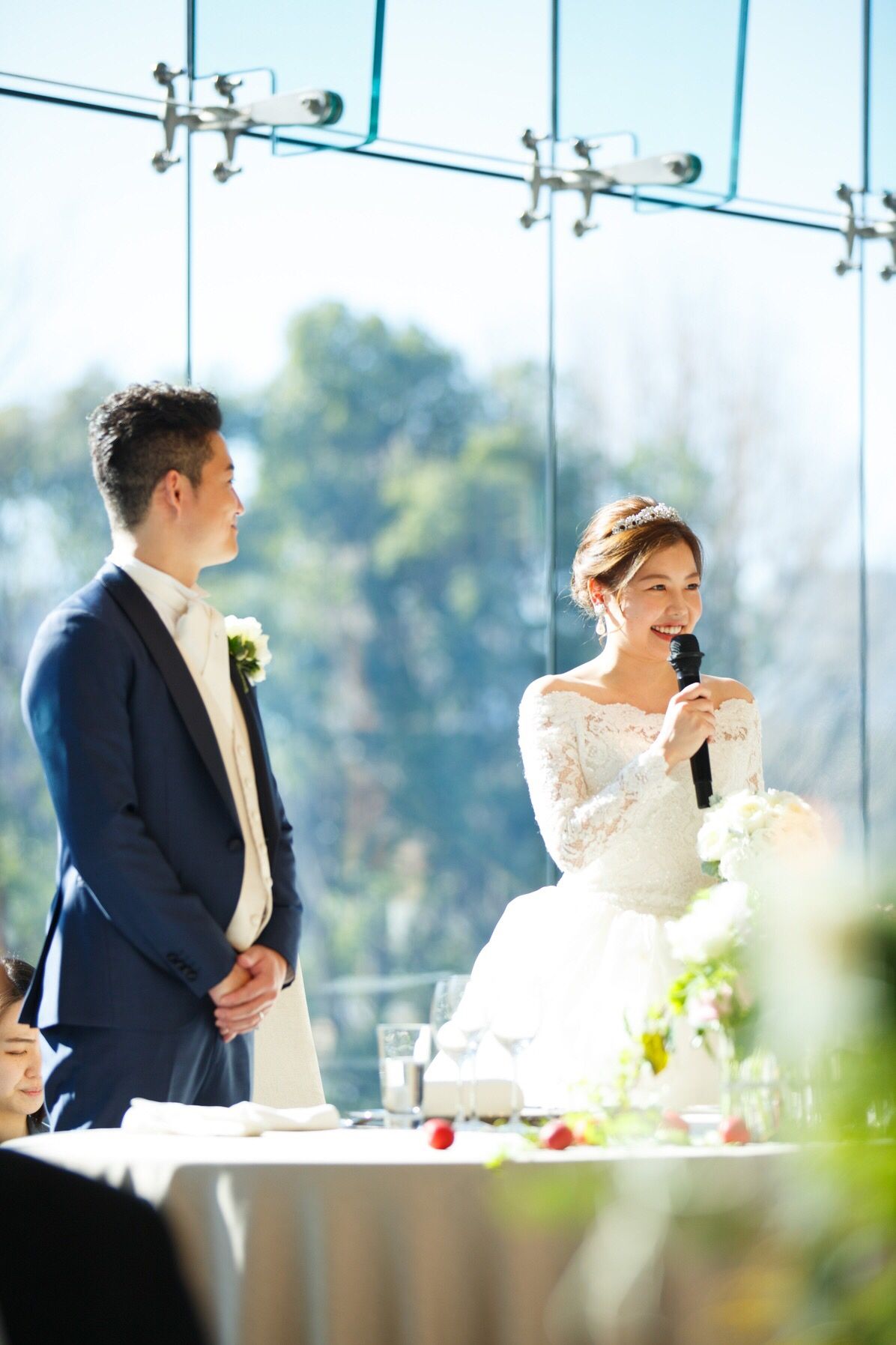 私たちが披露宴を挙げた葵西という会場は、高砂の後ろが全面ガラス張りで、自然光が差し込んでとても素敵な会場でした。