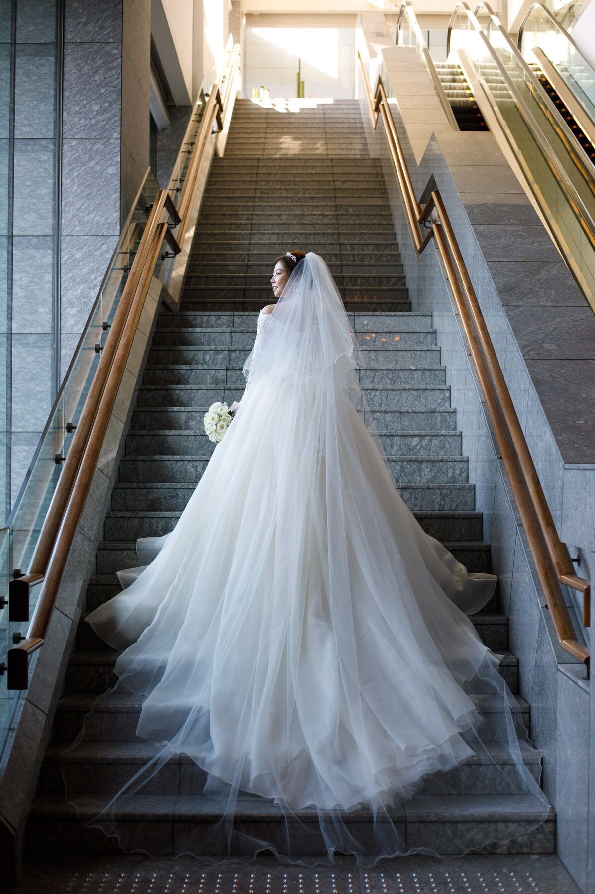バージンロードが長いので、トレーンが長いドレスを探していましたが、Graceはものすごくトレーン長いです。