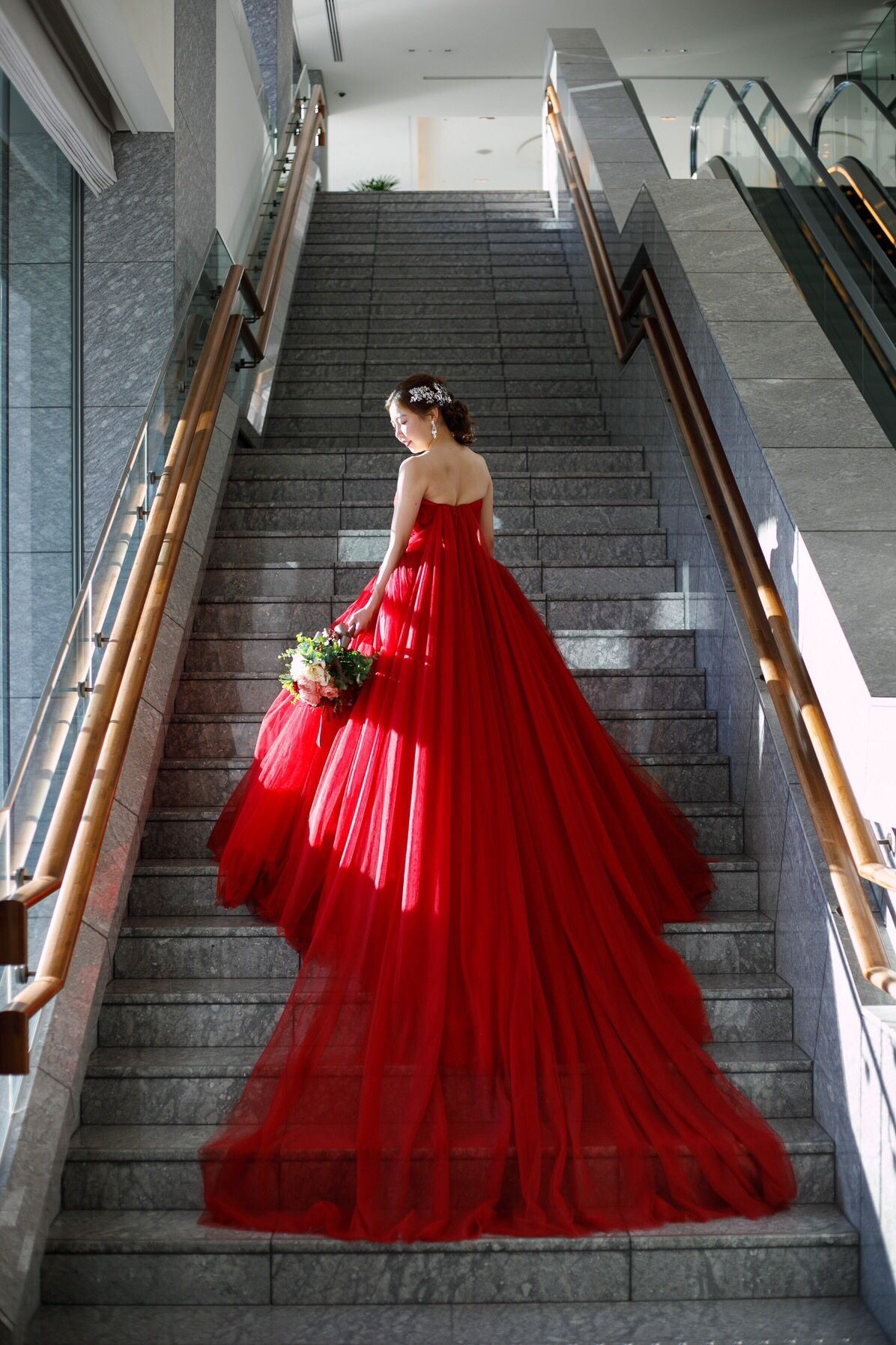 赤といっても、チュールの中はネイビーのチュールが入っていたり、鮮やかな赤、濃いめの赤等、いくつにも折り重なっているところが、あまり見ないデザインだったので決めました。