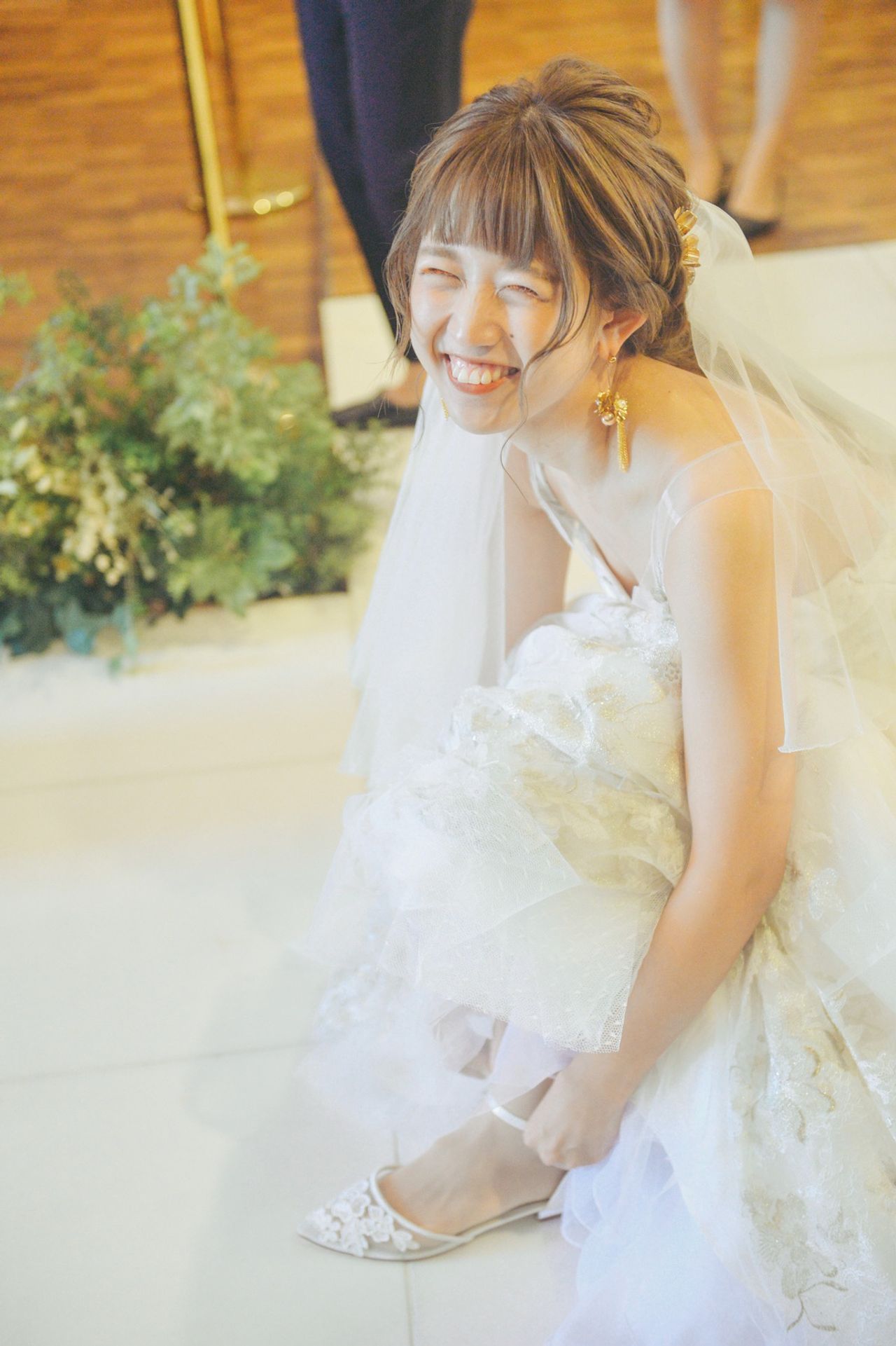 私は身長も足も大きい為、海外のものをネットで購入しました!透け感のある刺繍のもの、かつ夫との身長差がヒールで出ないようにぺったんこのシューズにしました 🌷