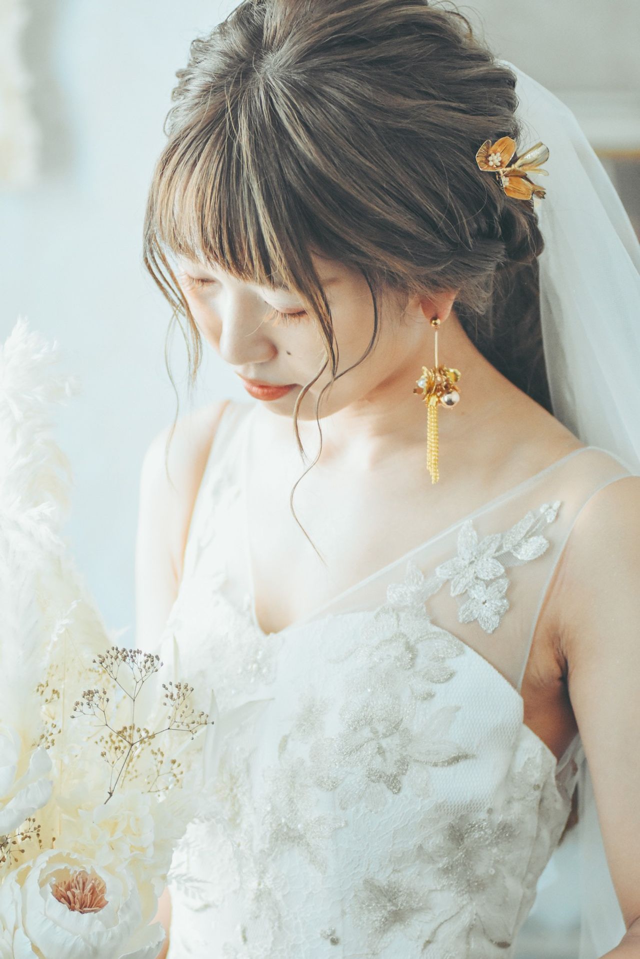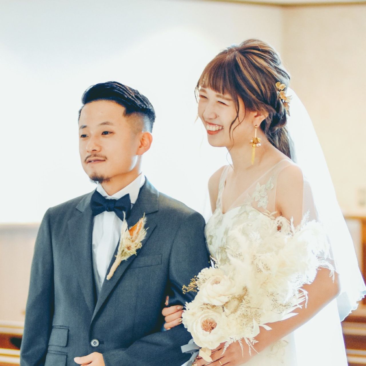 ウェディングドレスの時は@beijar_accessory 様のピアス、カラードレスの時は@_emule.official_ 様のピアスをつけました。