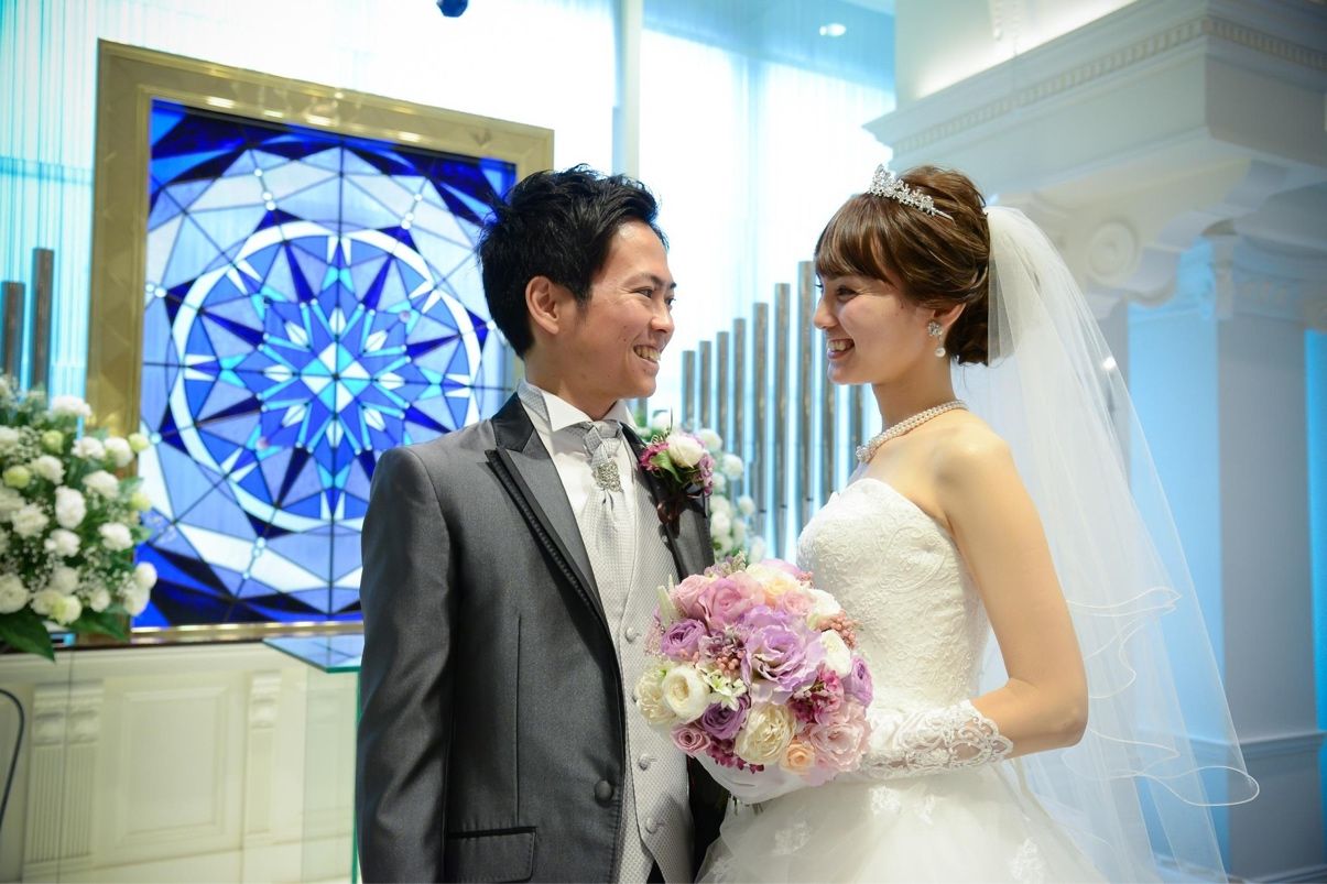 白亜のチャペルに、ブルーのステンドグラスがとても素敵なチャペルです!