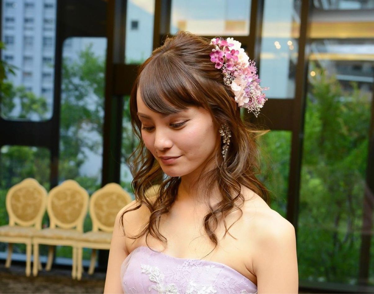 メイクは濃くしないように注意し、ヘアメイクは巻き下ろしに絶対したかったので、ハイライトを入れて、よく見えるようにセットしてもらいました。