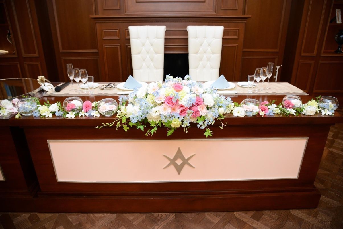 天井が高く、シャンデリアが豪華な披露宴会場でした。