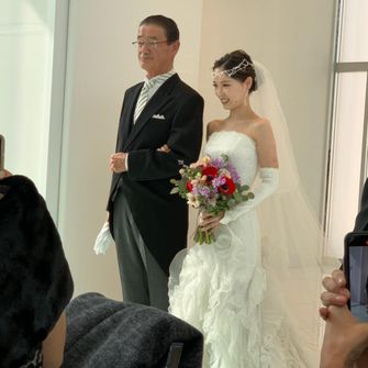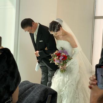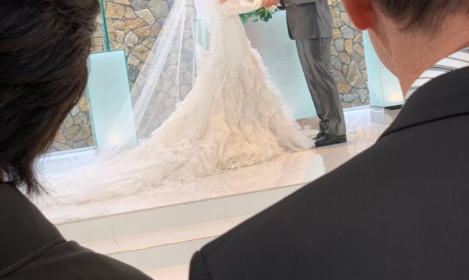 挙式はシンプルに。バージンロードやベールダウンなどを通して、自分自身が親への感謝や思いを、しっかりと感じながら歩める挙式とするため、シンプルに落ち着いた雰囲気で行いました!