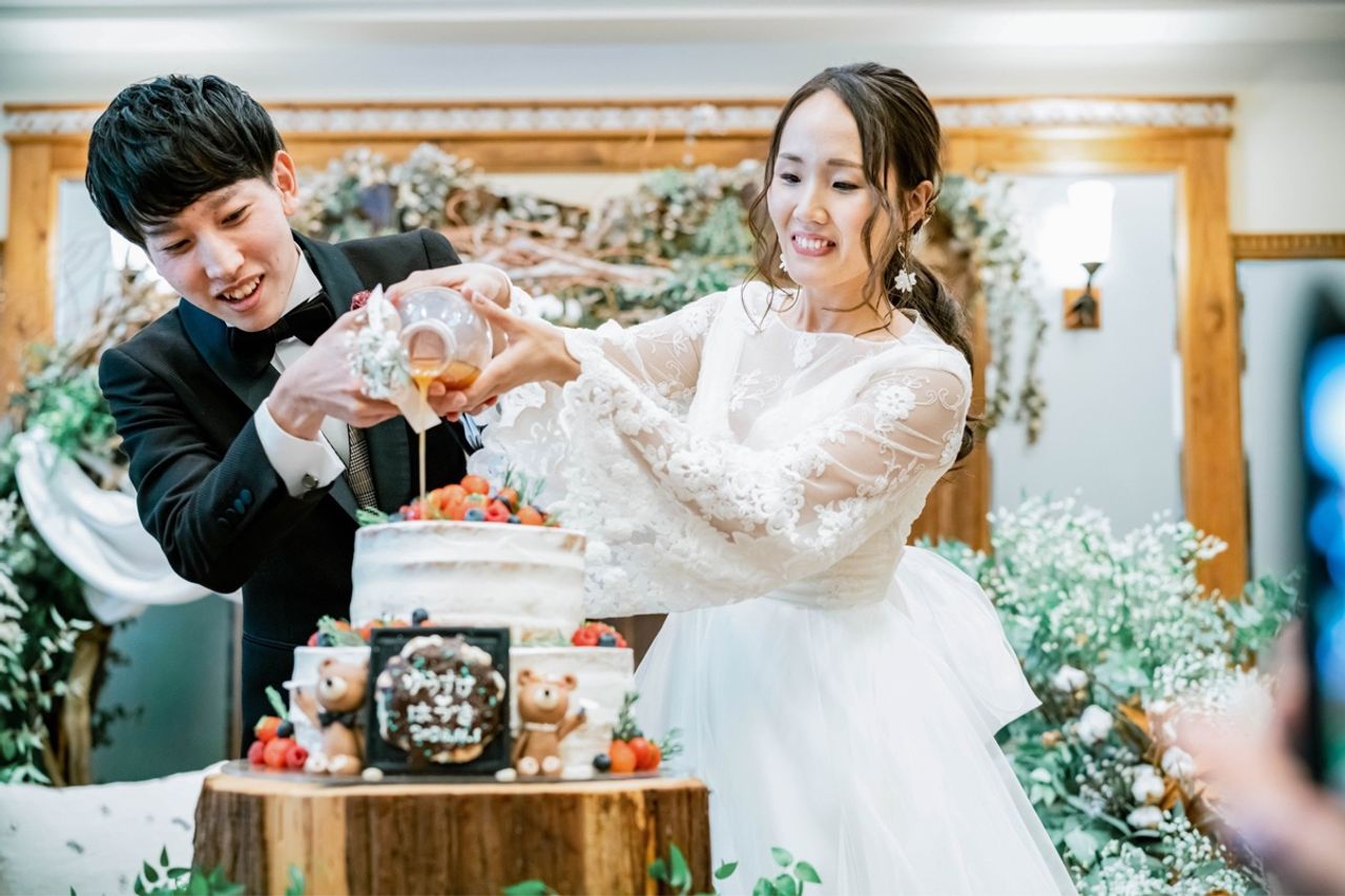 ケーキ入刀の代わりにカラードリップを行いたかったのでお願いしました。