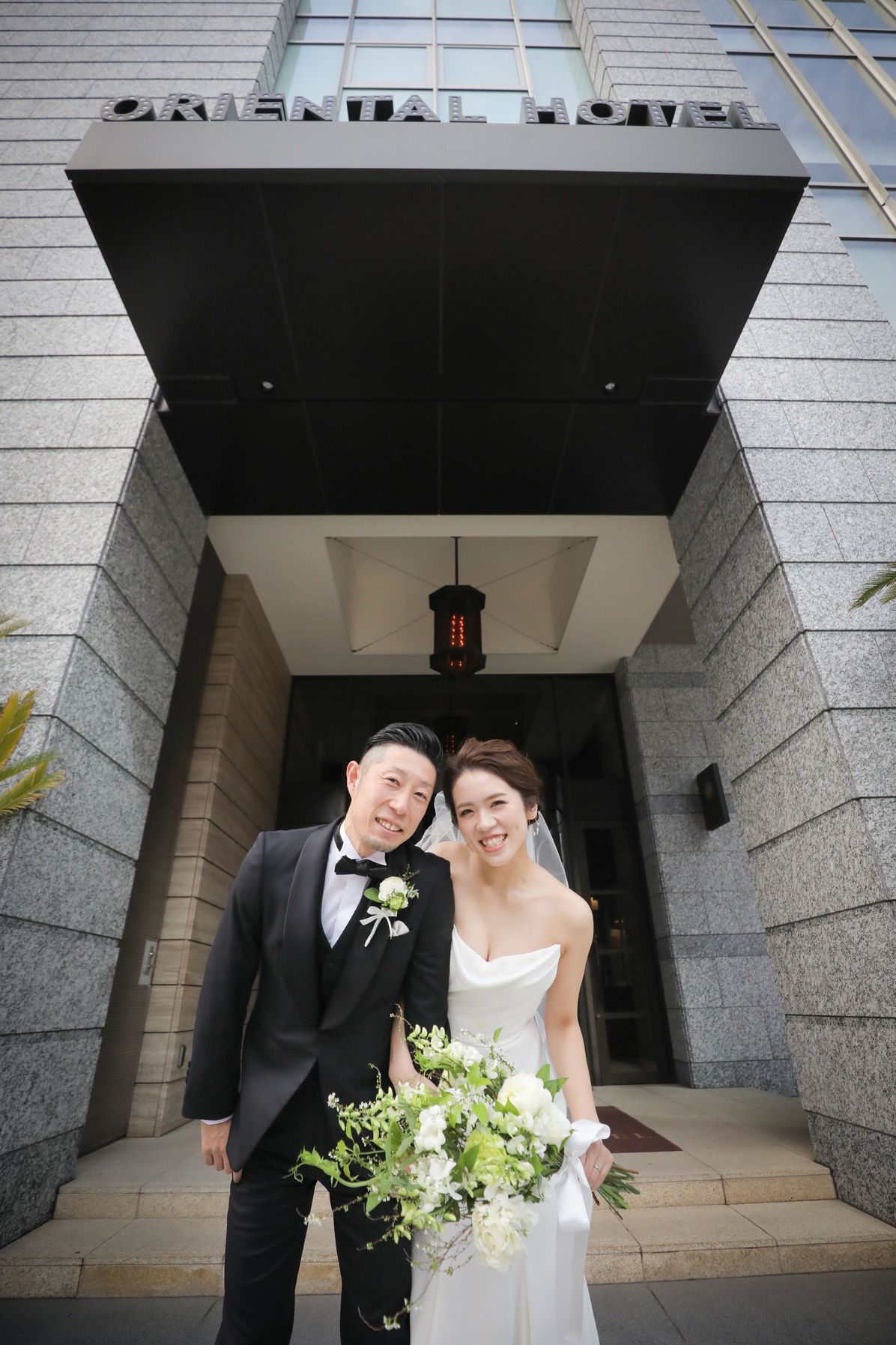 オリエンタルホテル旧居留地では平日に挙式される方は当日前撮りがついているので、挙式までに前撮りをしようか悩んだのですが、節約のために当日前撮りのみにしました。ですが当日前撮りもたくさん何枚も撮ってくださるので思い出を残すためとしては十分でした。